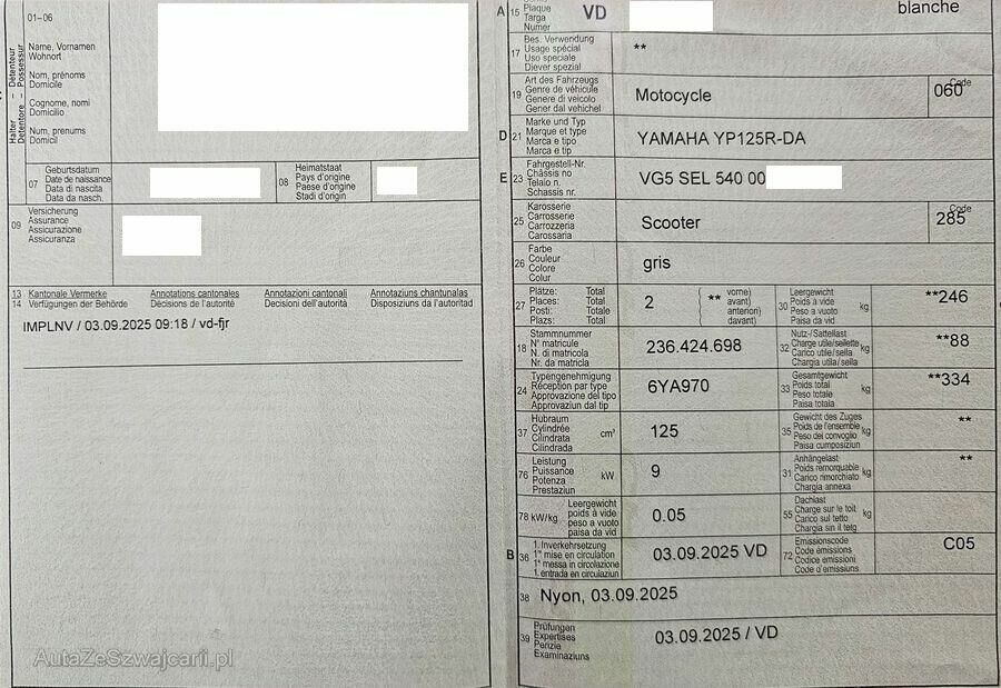 | Bauart / Aufbau / Türen | Motorrad / Roller / 0 |