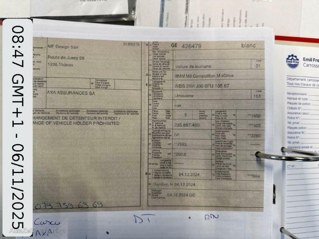 | Zusatzinformationen | Das Fahrzeug ist von der Straße abgekommenDer Motor ist ohne Öl gelaufen Die (vom Fahrzeugexperten) ermittelten Reparaturkosten beziehen sich auf das versicherte Ereignis. Allfällige zusätzliche, nicht versicherte Schäden/Vorschäden, sind in den Reparaturkosten nicht enthalten. Die deklarierten Ausstattungsmerkmale können von der effektiven Ausstattung abweichen.AchtungBei einem Hochvoltsystem - Spannungsfreiheit prüfen. Sicherheitshinweise und Betriebsanleitungen des Herstellers konsultieren und befolgen. Das Fahrzeug steht beim nachfolgend aufgeführten Standortbetrieb und muss vor Gebotsabgabe besichtigt werden.Bitte melden Sie Ihren Besuch beim Standortbetrieb telefonisch an:Déconstruction Autos-Motos SARte du Bois-de-Bay 57 Peney (Genève)1242 Satigny022 753 15 62 |