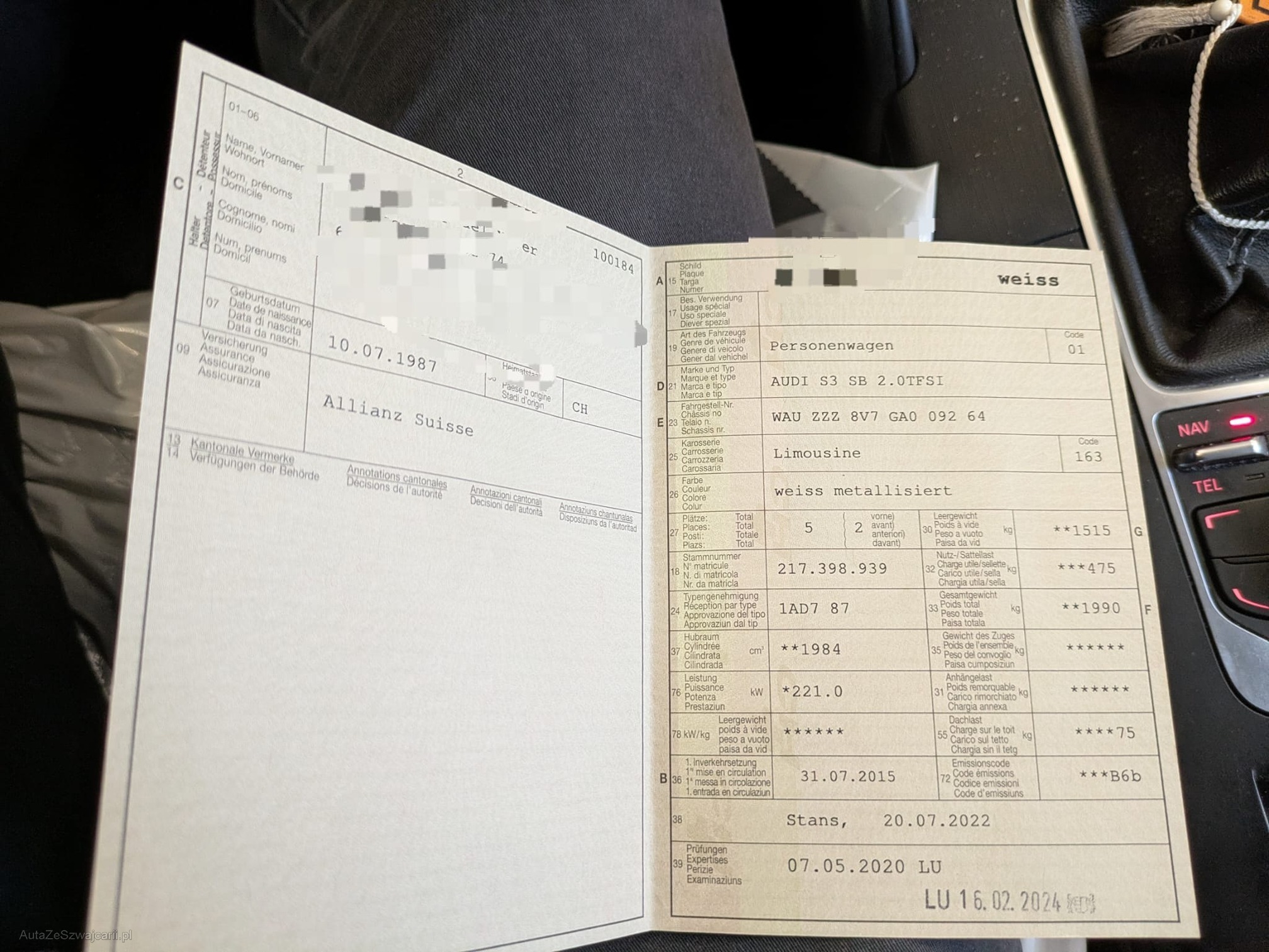 | VIN | WAU ZZZ 8V7 GA0 092 64 |