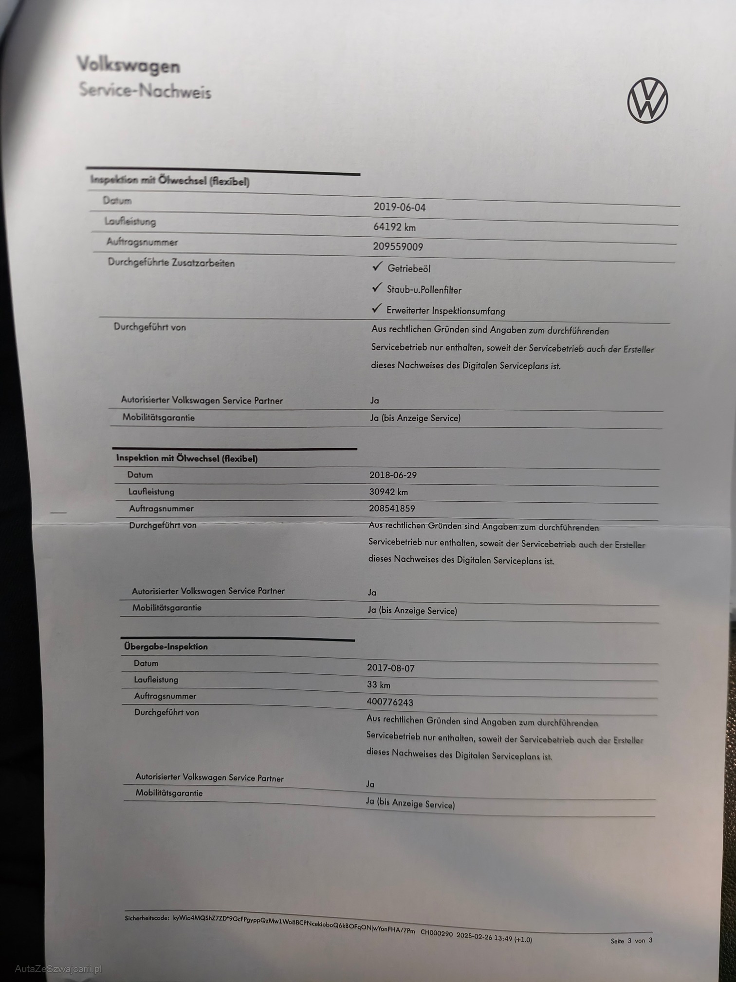 | VIN | WVWZZZ3ZZHP030332 |