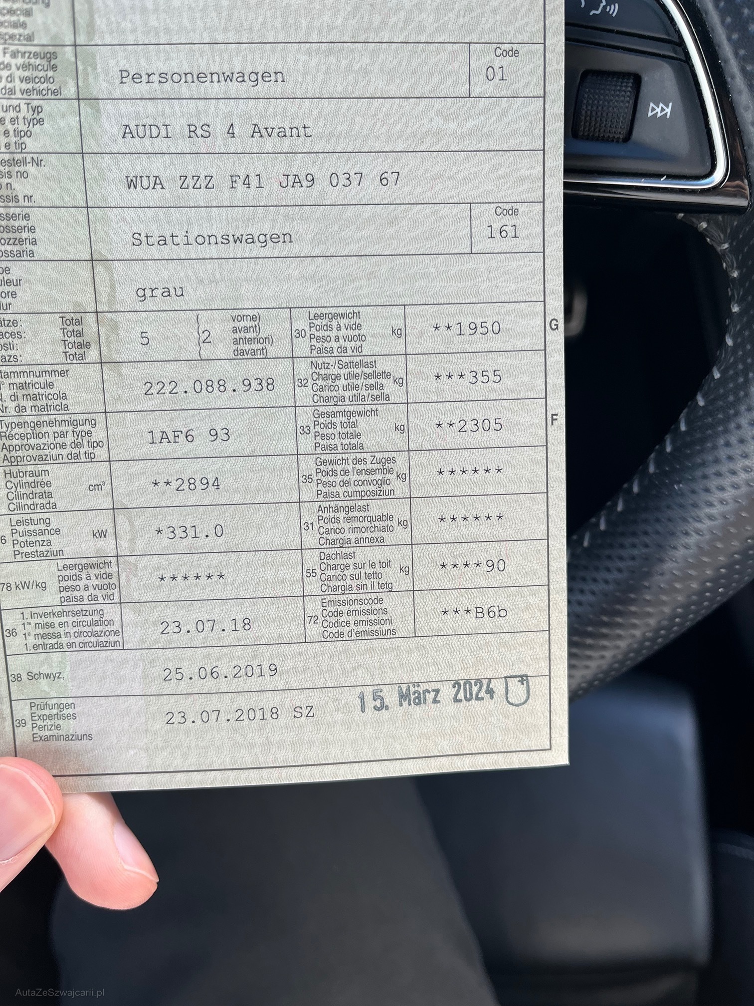 | VIN | WUAZZZF41JA903767 |