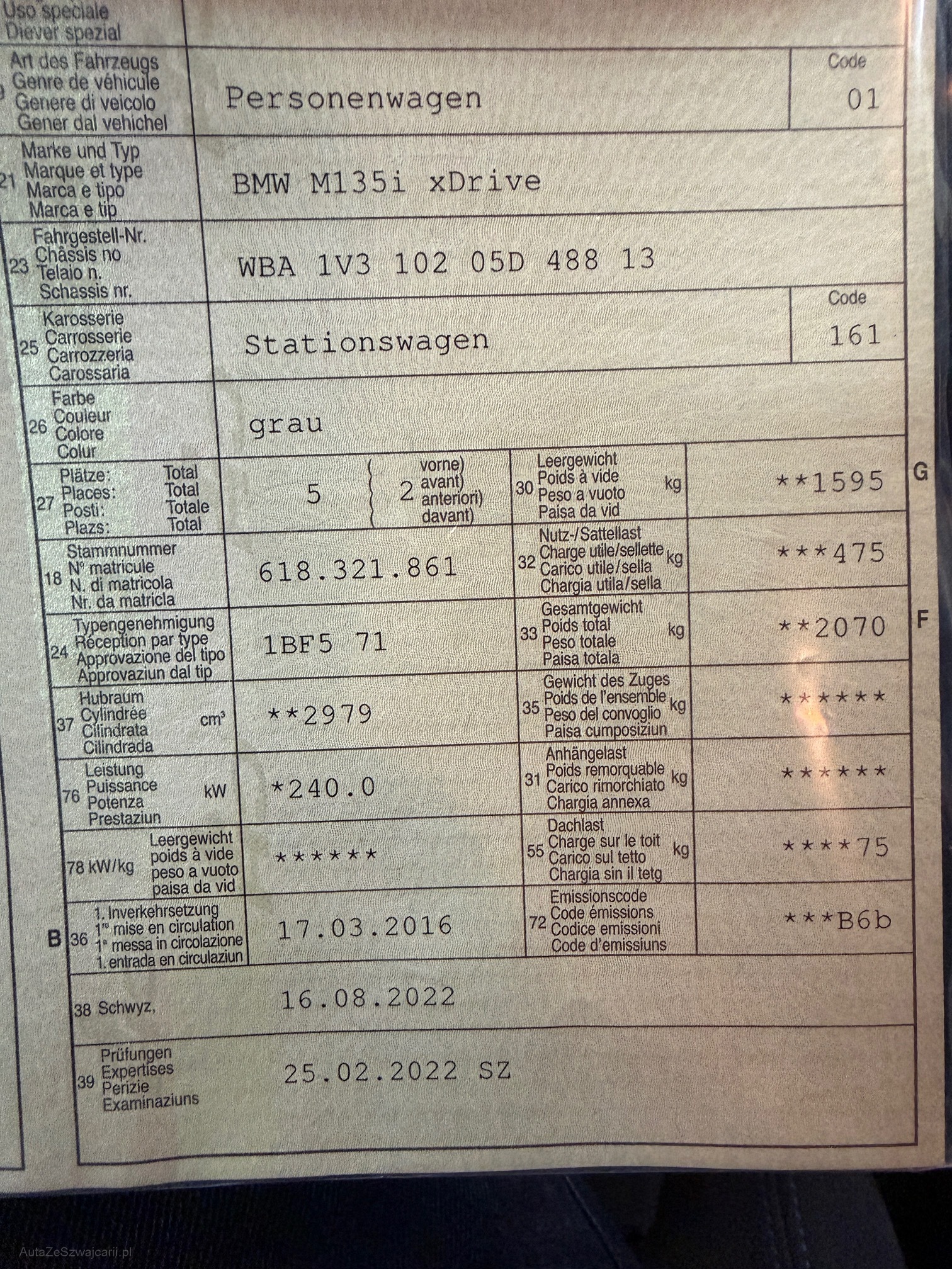 | Kommentar | X Metallic-Lackierung 960.00 X 420 Sonnenschutzverglasung 440.00 X 403 Glasdach, elektrisch 1’100.00 X 5AC Licht: Fernlicht-Assistent 170.00 X 552 Adaptiver LED Scheinwerfer 1’620.00 X 322 Komfortzugang 370.00 X 494 Sitze: Vordersitze heizbar 420.00 X 6WA Instrumentenkombination mit erweiterten Umfängen 190.00 X 431 Innenspiegel automatisch abblendbar 210.00 X 430 Innen- und Aussenspiegel automatisch abblendend 620.00 X 493 Ablagenpaket 190.00 X 413 Gepäcktrennnetz 240.00 X 544 Tempomat mit Bremsfunktion 320.00 X 8TH Speed Limit Info 410.00 X 508 Assist: Park Distance Control vorne und hinten 820.00 X 3AG Assist: Rückfahrkamera 510.00 X 674 Harman/Kardon-Soundsystem 1’000.00 X 6AK ConnectedDrive Services 440.00 X 6AM Real Time Traffic Information 190.00 X 609 Navigationssystem Professional 2’650.00 |
