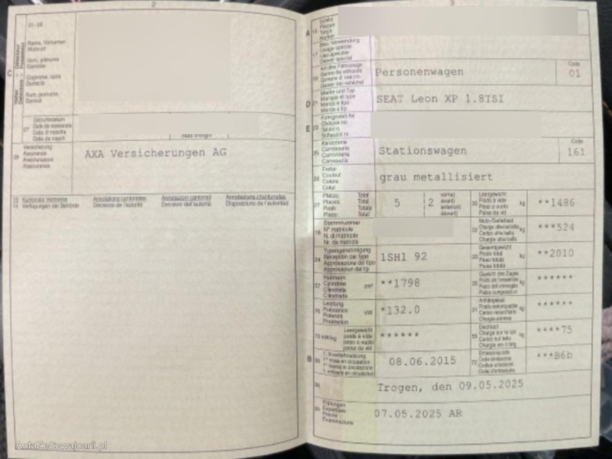 | Fahrzeugausweis | Vorhanden |