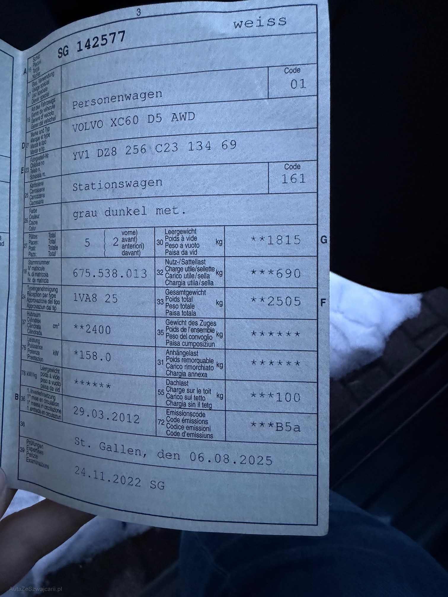 | Kommentar | Im Auftrag zu Verkaufen. Laut Besitzer ist Auto gelaufen dann geparkt und kann nicht gestartet werden. Es dteht Fehler Auto nicht im P obwohl das Auto im P ist. Wahrscheinlich nur ein Sensor oder Position vom Schalthebel. Bitte auto besichtigen bevor Sie bieten. ( ) auto ist in 8880 Walenstadt Keine Nachverhandlung nach dem Zuschlag. Ab Platz keine Garantie |
