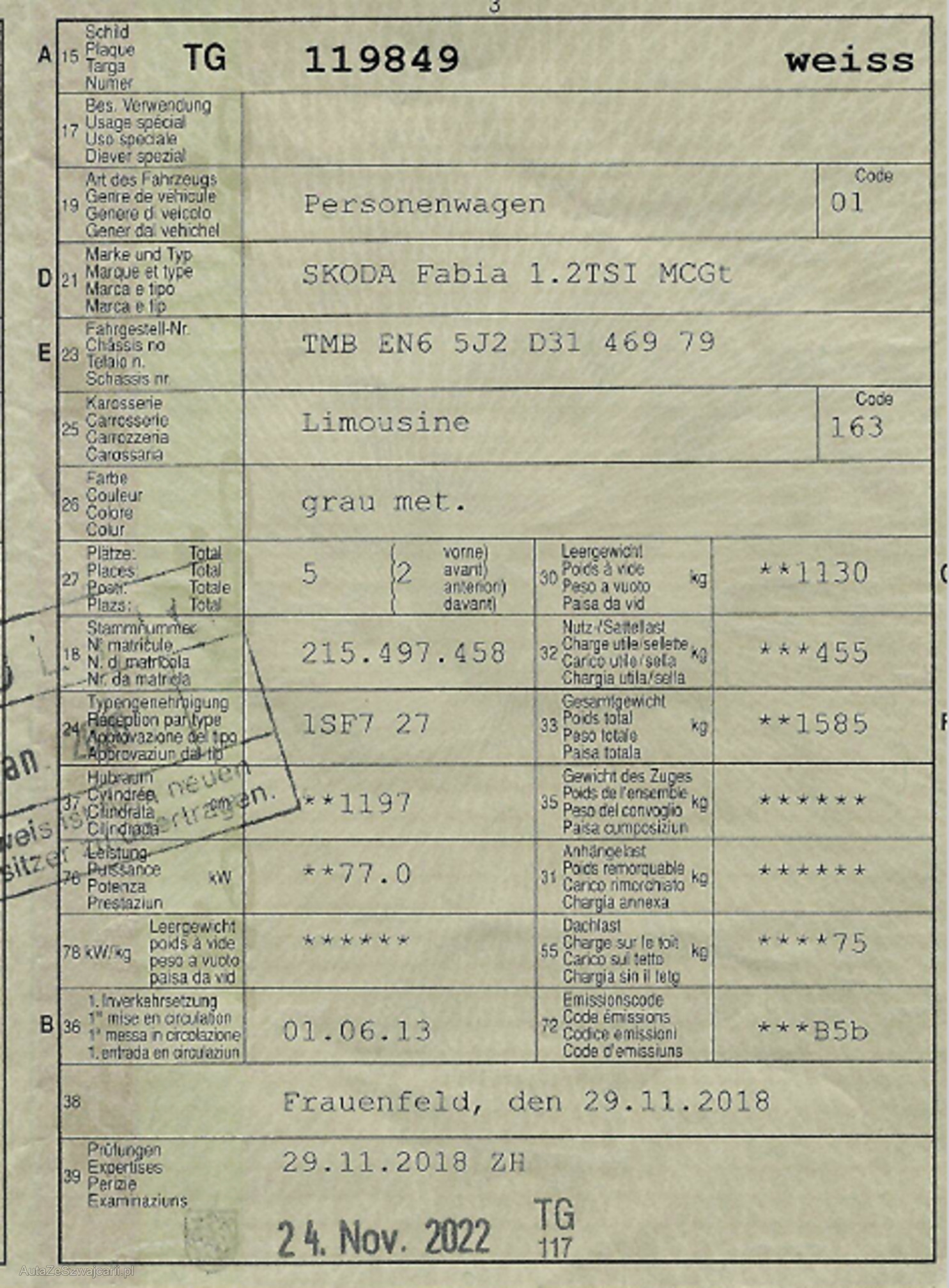 | Letzte Inspektion | 2022-11-01 |