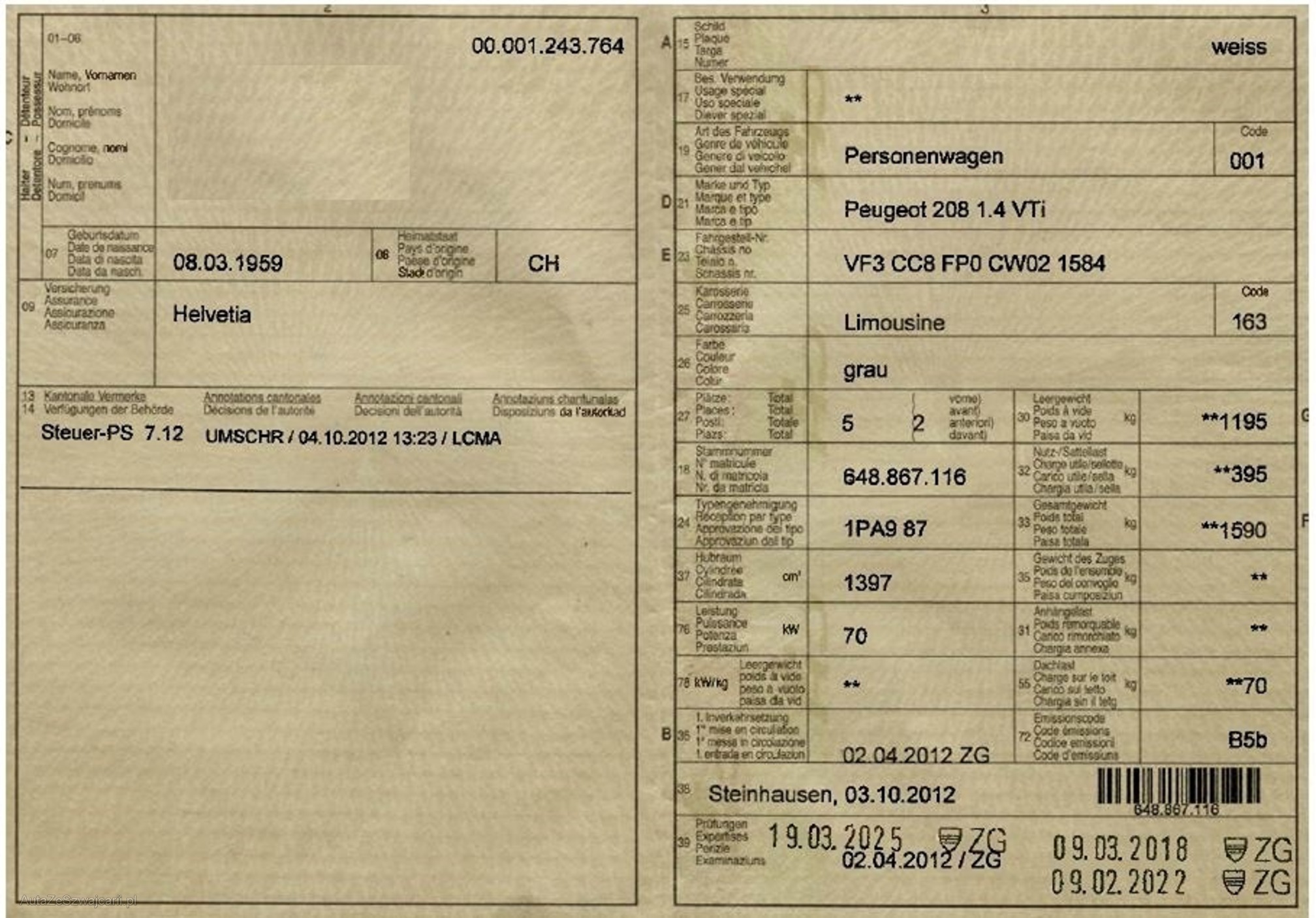 | VIN | VF3CC8FP0CW021584 |