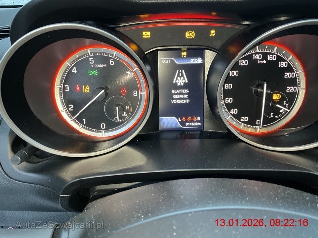 | Serienausstattung | Lenkrad: Bedientasten am Lenkrad für Audio und Telefon, Assist: Berganfahrhilfe, LCD Multifunktionsfarbdisplay, ISOFIX Kindersitzvorrichtung, Getriebe: 5-Gang-Getriebe, Aussenspiegel rechts und links beheizt, elektrisch verstell- / und einklappbar, Privacy Glass, Heckscheiben-Wisch-/Waschanlage, Start-/Stopp-Automatik, Lenkrad: Lederlenkrad, Assist: Spurwechselassistent, Licht: Lichtautomatik, Gurtstraffer und Gurtkraftbegrenzer vorne und hinten, Räder: Leichtmetallfelgen 16J 185/55R16, Polster: Stoff-Ausstattung, Sitze: Rücksitze geteilt abklappbar, Airbag: Airbag Beifahrer deaktivierbar, Kopfstützen hinten höhenverstellbar, Wegfahrsperre elektronisch, Garantie: Suzuki 3 Jahre Werks- und Mobilitätsgarantie (max. 100000 km) - sowie weitere 2 Jahre Zusatzgarantie inkl. Assistance als Option, Assist: Bremsassistent (BAS), Garantie: Suzuki 12 Jahre Garantie gegen Durchrostung, Zentralverriegelung mit Fernbedienung, Kopfstützen vorne höhenverstellbar, Assist: Spurleitassistent, ABS, EBD elektronische Bremskraftverteilung, Sonnenblende Fahrer und Beifahrerseite mit Spiegel, Airbag: Airbag Fahrer und Beifahrer, Drehzahlmesser, Airbag: Seitenairbag für Fahrer und Beifahrer, Elektrische Fensterheber vorne, Licht: Leuchtweitenregulierung automatisch, Keyless Entry / -Start, Allradantrieb permanent, Assist: Adaptiver Tempomat, Licht: Drittes Bremslicht, Media: Navigations-Funktions-Aktivierung, Räder: Reifenreparatur-Set (Tire Fit), Elektrische Fensterheber hinten, Airbag: Kopfairbags vorne und hinten, Bordcomputer, Servolenkung, Assist: Verkehrszeichenerkennung, Räder: Reifendruck-Kontrollanzeige, Licht: Guide-me-home Funktion, Elektronisches Stabilitäts- und Traktionskontrolle (ESP / TCS), Lenkrad höhenverstellbar, Licht: Nebelscheinwerfer, Assist: Park Distance Control hinten, akustisch, Klima: Klimaautomatik mit Pollenfilter, Assist: Spurhalteassistent, 3-Punkt-Sicherheitsgurte auf allen Plätzen, Sitze: Vordersitze heizbar, Licht: Fernlicht-Assistent, Media: Touchscreen-Multimediasystem mit Smartphone-Anbindung, Bluetooth und DAB+ und Navigation, Licht: LED-Tagfahrlicht, Lenkrad längsverstellbar, Licht: LED Abblend-und Fernlicht, Heckscheibenheizung, Sitze: Fahrersitz höhenverstellbar, Media: USB-Anschluss, Aussenspiegel und Türgriffe in Wagenfarbe, Licht: Nebelschlussleuchte, Assist: Rückfahrkamera, Media: 6 Lautsprecher, Katalysator geregelt, Assist: Notbremssystem mit Kollisionswarner |