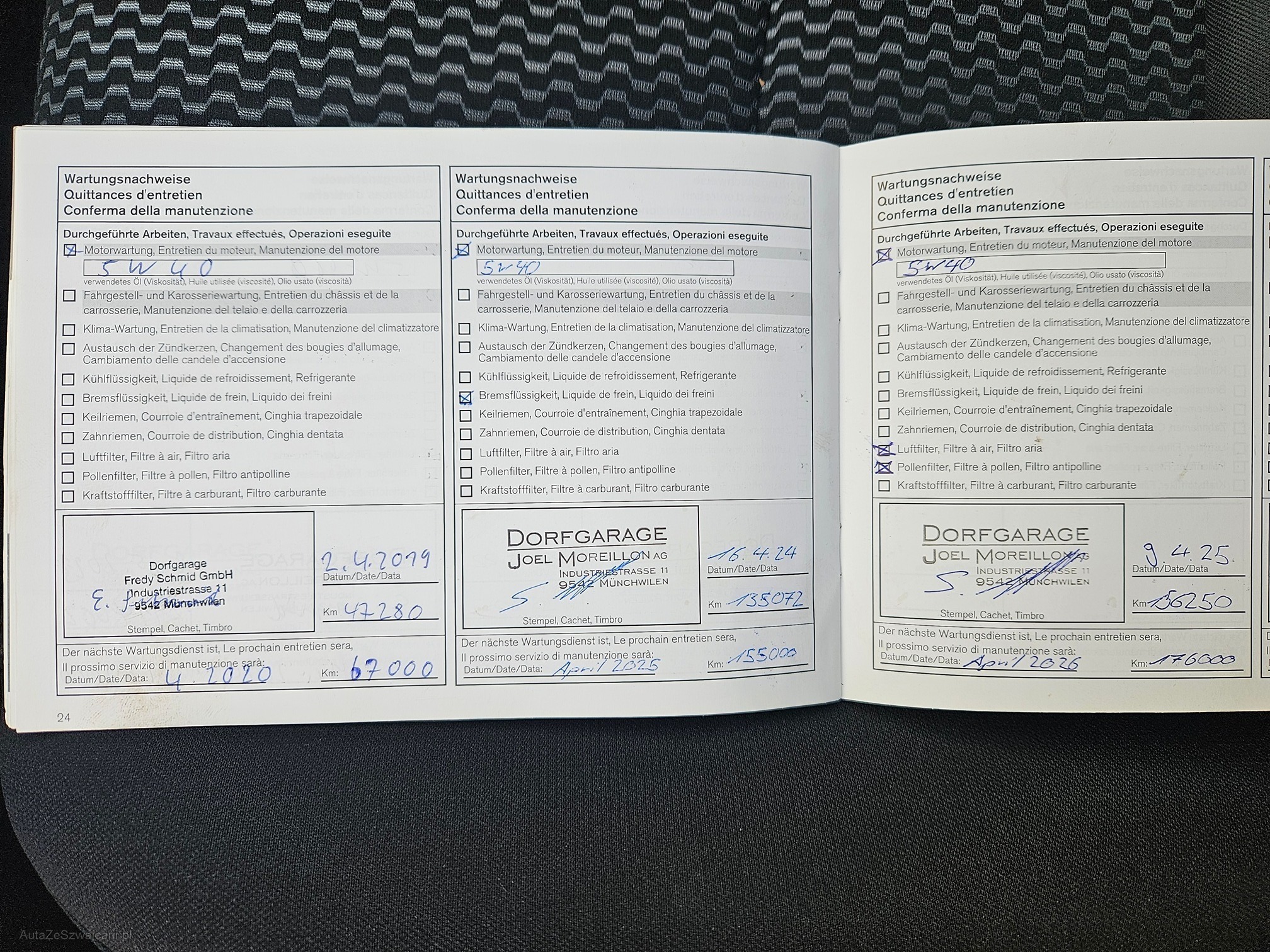| Kommentar | Motor läuft auf 3 Zylinder, keine weiteren Prüfungen durchgeführt. Carrosserie und Innenraum gepflegt, kleine Beule und Aussbesserungen vorne rechts gemäss Foto. Winterpneu sind neu. Fahrzeug kann bei uns jederzeit besichtigt werden. Keine Nachverhandlungen nach Abschluss. |