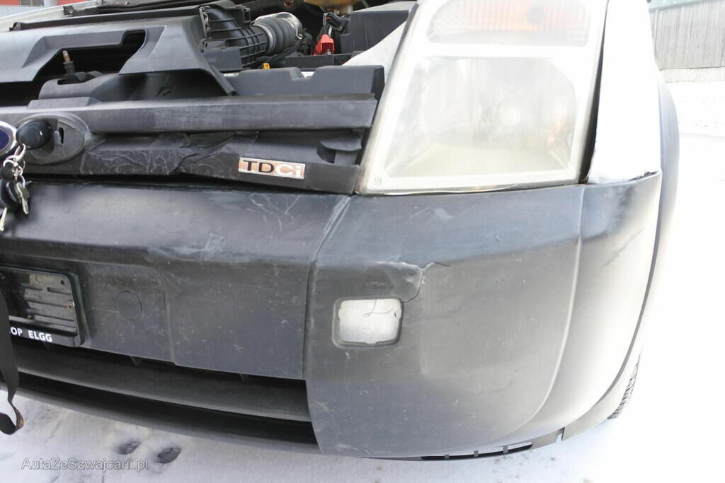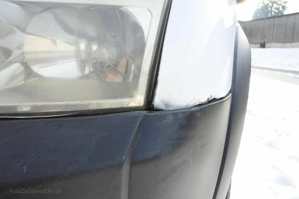 Die Stossstange, der Grill, die Motorhaube, der Scheinwerfer und Kotflügel vorne links sind beschädigt. Die Lackierung am Kotflügel vorne rechts ist abgetragen