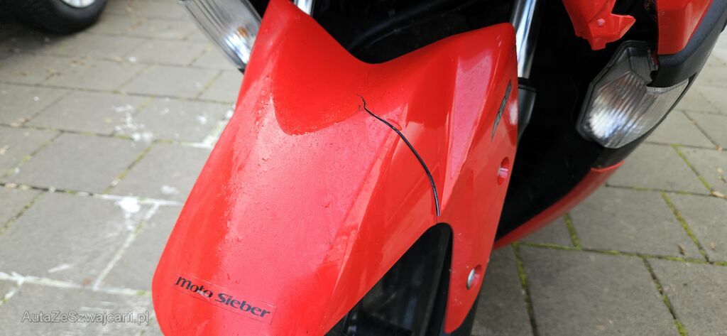 Frontschale, Frontscheibe, Scheinwerfer, Seitenschalen VL + VR, Heckschale HR+HL, Heckleuchte, Nummerträger, Forderradaufhängung verzogen, Hinterradaufhängung (Hinterrad steht schief)