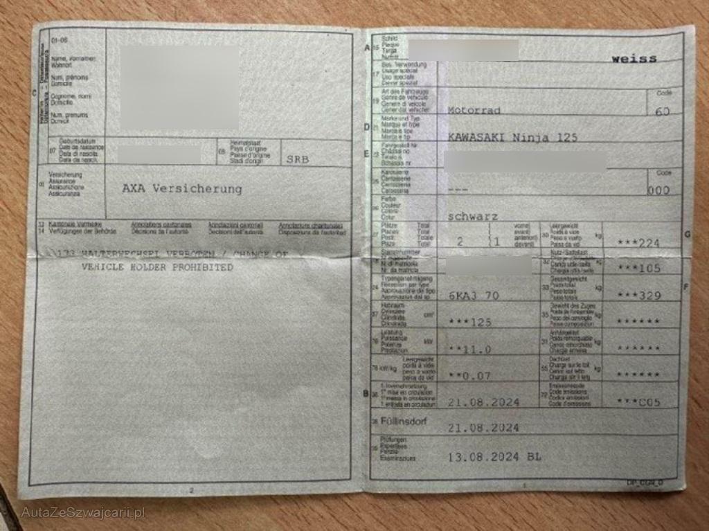 | Fahrzeugausweis | Vorhanden |
