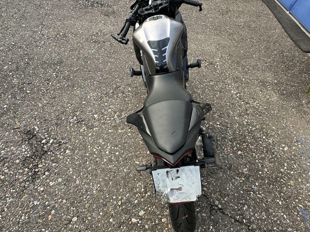| Beschädigungen | Armaturen, Aussenspiegel links, Diverse Anbauteile, Front, Fussraster links, Gabelholm, Griff links, Lenker, Rad vorne, Scheinwerfer, Schutzblech vorne, Seite links, Sitz, Tank, Verschalungen links, Verschalungen vorne, Windschutzscheibe |