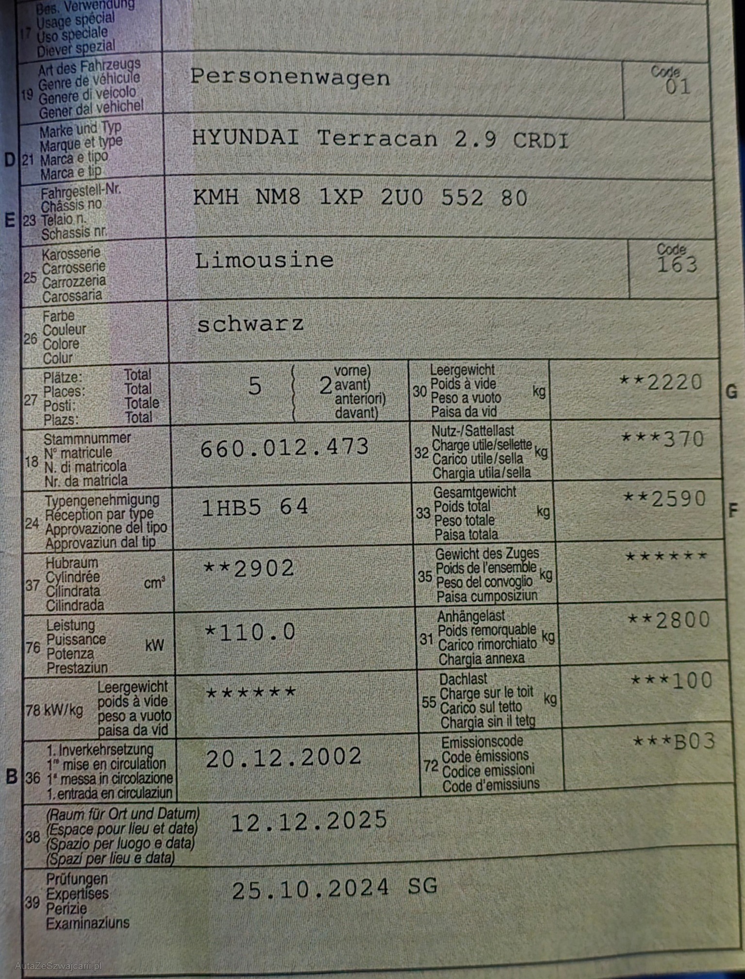 | Kommentar | - Karosserie hat Gebrauchsspuren (siehe Fotos) - Letzter Service am 11.2025 mit 148500 Km - Abgastest am 01.2026 - Anhängerkupplung 2800 Kg - Neue Wasserpumpe - Zylinderkopfdichtung defekt. Fahrzeug ist Fahrbar. Jede Gewährleistung, soweit nach Gesetz möglich, wird wegbedungen, insbesondere sind Wandelung und Minderung ausgeschlossen. |