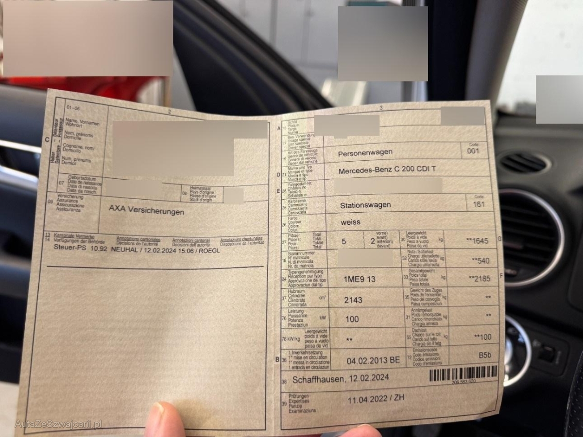 | Fahrzeugausweis | Vorhanden |