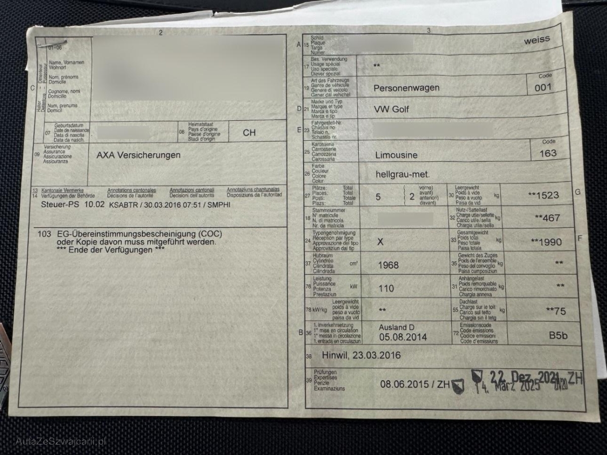 | Fahrzeugausweis | Vorhanden |