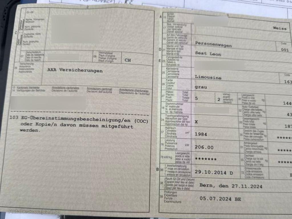 | Fahrzeugausweis | Vorhanden |