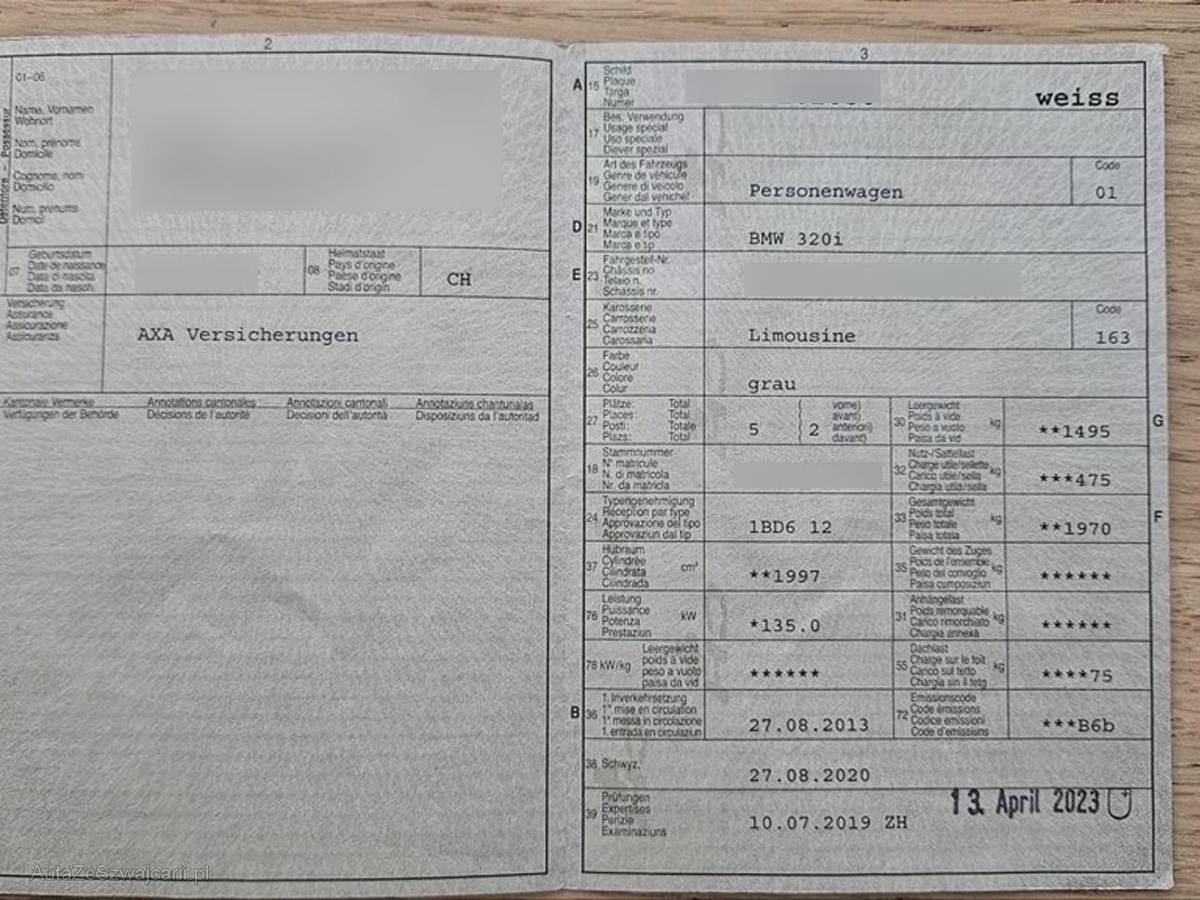 | Fahrzeugausweis | Vorhanden |