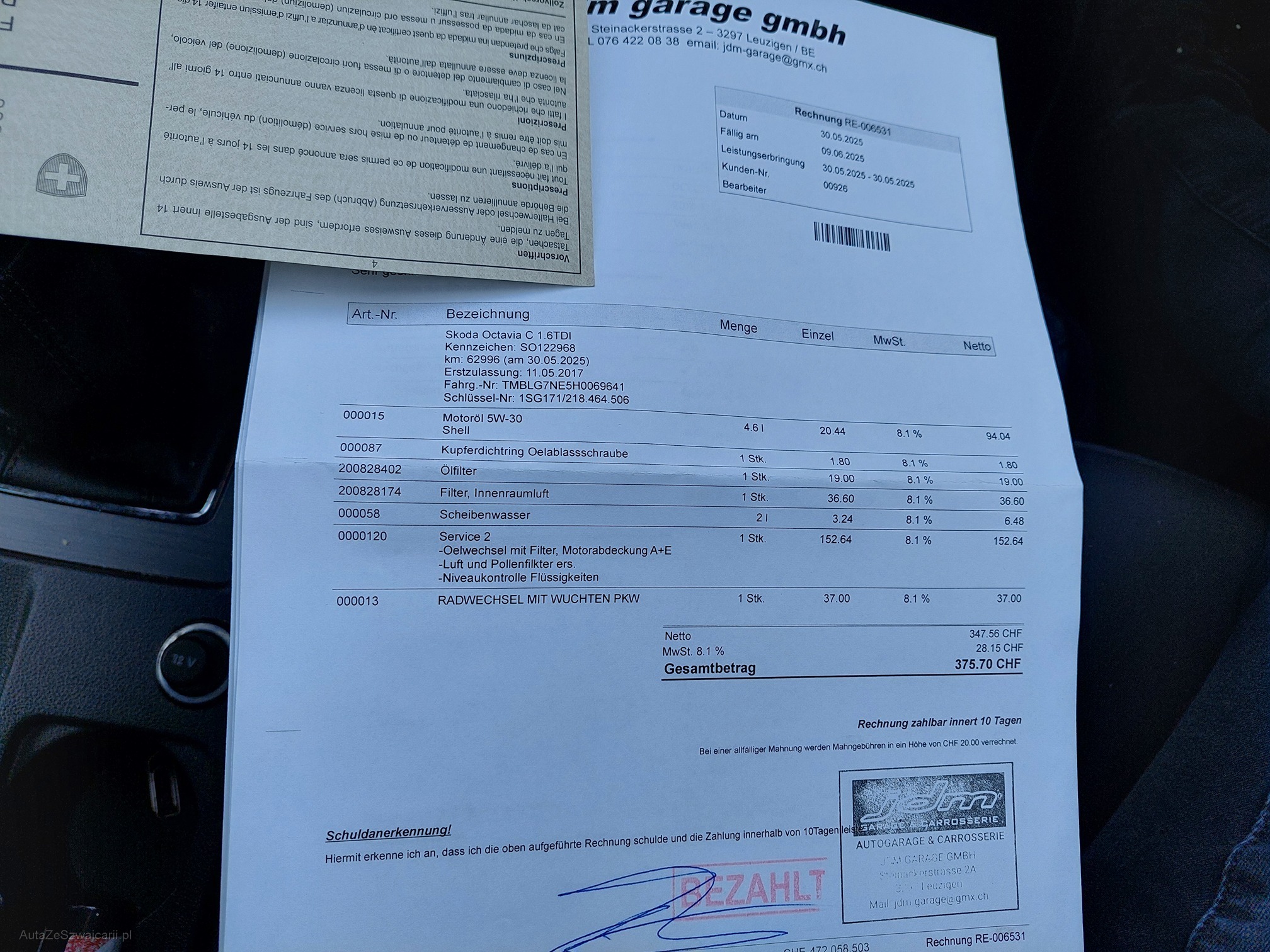 | Kommentar | Fahrzeug hat Schimmel(siehe Foto). Unsere Fahrzeuge wurden keiner Prüfung unterzogen, Fahrzeugkauf auf eigenes Risiko ab Platz ohne Nachwährschaft. Das Gewährleisten für Sachmängel wird weggegangen. Fahrzeugbereifung, Fahrzeugzustand und Ausstattung gemäss Bildern. |