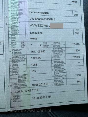 | Condition_and_Equipment | Zustand Fahrzeug ist rollbar. Batterie leer. --- Serienaustattung Gepäckraumabdeckung Höhenverstellbare Vordersitze Airbag Fahrer und Beifahrerseite Kindersitz-Vorbereitung Isofix Innenspiegel automatisch abblendbar Regensensor Lenksäule mit Höhen- und Längseinstellung Aussenspiegel elektrisch anklappbar Vordersitze beheizbar Zentralverriegelung mit Funkfernbedienung Geschwindigkeitsregelanlage GRA Aussenspiegel elektrisch verstellbar und heizbar Elektrische Fensterheber vorne + hinten Klapptische an den Rücklehnen der Vordersitze Dachreling eloxiert Textilfussmatten Klimaanlage Climatronic Lendenwirbelstützen Vordersitze Mittelarmlehne vorne mit Ablagebox Seiten- und Heckscheibe hinten abgedunkelt Beifahrer Sitzlehne umklappbar Multifunktionsanzeige Plus MFA Schubladen unter den Vordersitzen ESP/ EDS/ ASR/ ABS/ BA Auto-Hold-Funktion Heckklappe mit el. Öffnung und Schliessung Frontscheibe in Dämmglas Pack Winter 3 Einzelsitze in der 2. Reihe Dieselpartikelfilter Elektronische Parkbremse Nebelscheinwerfer vorne/ Abbiegelicht Knieairbag Fahrer Kopfairbag vorne und hinten inkl. Seitenairbag vorne Multifunktions-Lederlenkrad 3-Speichen Elektronische Differentialsperre XDS Stop + Start System mit Brems-Energie-Rückgewinnung Elektrische Schiebetüren links und rechts Müdigkeitserkennung Keine Gewähr auf die Angaben der Serienausstattungen Sitzbezüge in Leder Alcantara Digitaler Radioempfang DAB+ Automatische Distanzregelung ACC mit Front Assist Radiosystem Composition Media Blind Spot Sensor/ Parkassistent Blind Spot Sensor Plus/ Parkassistent/ Lane Assist VSSP Volkswagen Swiss Service Package 4 Jahre/ 100'000 km Sonderausstattung Sportfahrwerk Sonderlackierung Rückfahrkamera 2 integrierte Kindersitze hinten/ links+rechts Bi-Xenon-Scheinwerfer mit Kurvenlicht Anhängevorrichtung schwenkbar Seitenairbags hinten/ 2. Sitzreihe Sonnenschutzrollo an den Türscheiben hinten Lederausstattung Vienna/ Sportsitze vorne/ 7-Pl. Garantie+ 4 Jahre/ 100'000 km Leichtmetallräder 18" Marseille Pack 7-Sitzer Navigationssystem Discover Media |