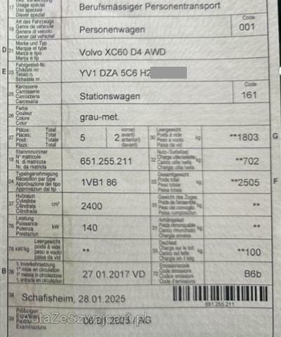 | Condition_and_Equipment | Demontage Persönliche Gegenstände oder Ladegut im Fahrzeug werden entfernt. Zustand Fahrzeug ist NICHT fahrbar. Fahrzeug ist rollbar. Schlüssel Nur ein Schlüssel vorhanden. --- Links Linke Seite beschädigt. Rechts Rechte Seite beschädigt. Front Front links eingedrückt. Radhaus vorne links eingedrückt / gestaucht. Achse Vorderachse ist beschädigt. Aufhängungsteile vorne links beschädigt. Risiko Vorderachse. Risiko Lenkung. Elektrik Risiko Steuergeräte. Kabelstränge verbrannt, beschädigt, abgerissen. Innenraum Innenraum ungepflegt. Unangenehme Geruchsentwicklung im Innenraum (z.B. Treibstoff, Lebensmittel, Rauch, etc.) Sonstige Schäden Div.Carrosserie Teile sind leicht beschädigt. Div. Roststellen am Fahrzeug. Hagel Hagelschaden leicht. --- Serienaustattung Klimaautomat Airbag Fahrer und Beifahrerseite Elektronische Wegfahrsperre Elektrische Fensterheber vorne + hinten Aussenspiegel elektrisch verstellbar und heizbar Tempomat Bordcomputer Zentralverriegelung mit Fernbedienung Höhenverstellbare Vordersitze Innenspiegel automatisch abblendbar Lenkrad verstellbar SIPS Kopf-/ Schulterairbag Regensensor ABS und EBV Elektr. Bremskraftverteilung Lederschalthebel Antibeschlagssensor Bremsassistent EBA Isofix-Vorbereitung Rücksitze aussen Park-Distanz-Sensor hinten Mittelarmlehne vorne mit Staufach Dekorausstattung Aluminium 2 Make-up-Spiegel beleuchtet Aussenspiegel elektrisch anklappbar inkl. Bodenleuchten Laderaumrollo IDIS Fahrerinformationssystem WHIPS Schleudertrauma-Schutzsystem Mittelarmlehne h mit Getränkehalter/ Staufach Getränkehalter in Tunnelkonsole Dachreling silber SIPS Seitenairbag Fahrer und Beifahrerseite Colorverglasung Dieselpartikelfilter Hill Descent Control HDC Elektrisch verstellbarer Fahrersitz mit Memory Automatische Parkbremse Aktivkohlefilter mit automatischer Umluftschaltung Gepäckraumschutz Reifendruck-Sensoren TPMS Rücksitzbank im Verhältnis 40/20/40 Stop + Start System LED Tagfahrlicht Komfortsitze mit Lederbezug Keine Gewähr auf die Angaben der Serienausstattungen Multifunktions-Sport-Lederlenkrad Digitale Instrumentierung Lendenwirbelstützen elektr. für Vordersitze Audiosystem Sensus High Performance Sound VSP Volvo Swiss Premium Leichtmetallräder 18" Tucan ESC Fahrdynamikregelung Sonderausstattung Park-Distanz-Sensor vorne + hinten Rückfahrkamera Metallic-/ Perleffekt-Lackierung DAB+ Digital Audio Broadcast Pack Light Pack Versatility Pack Winter InfoTS Sensus Connect mit High Performance Sound |