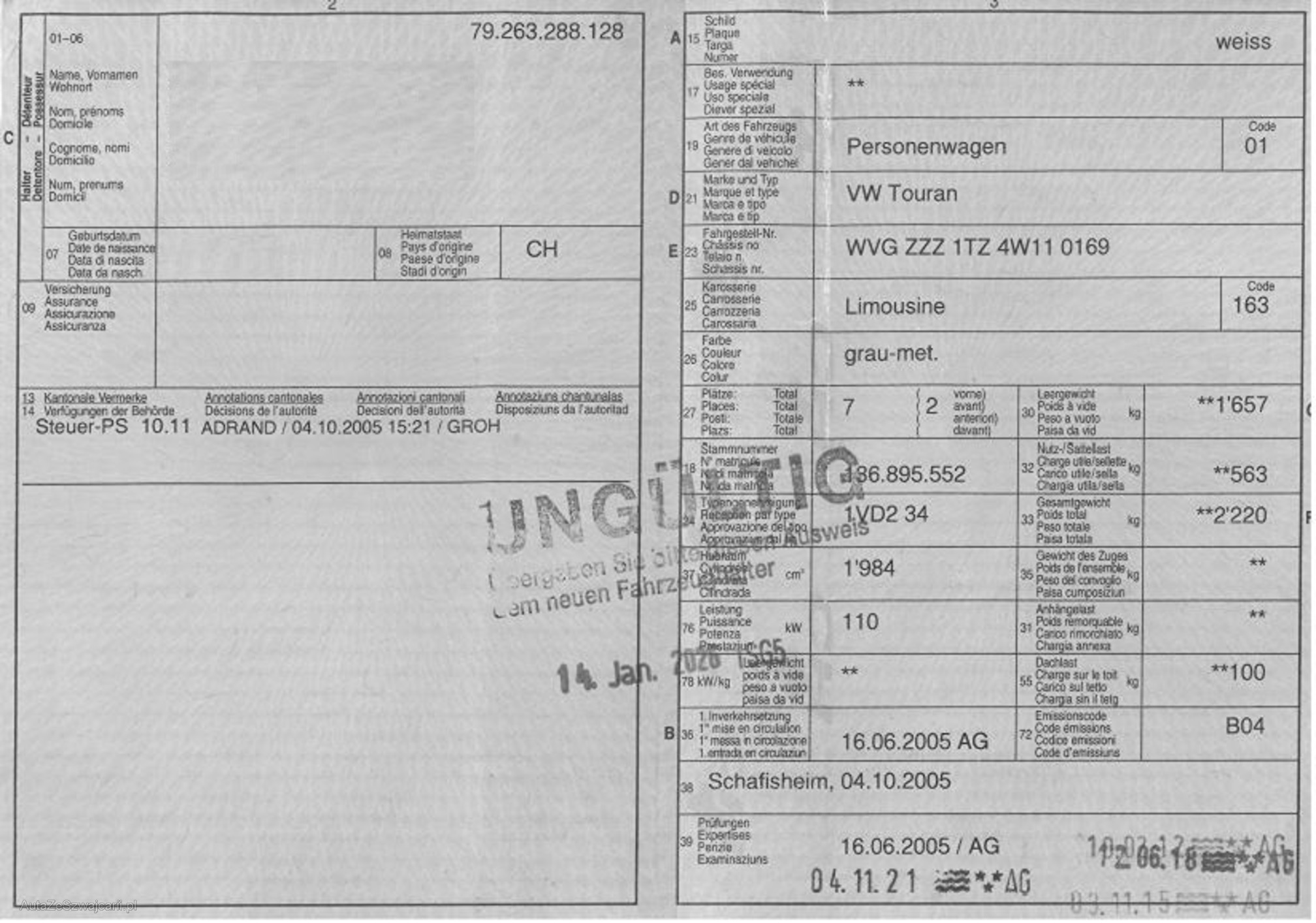 | VIN | WVGZZZ1TZ4W110169 |