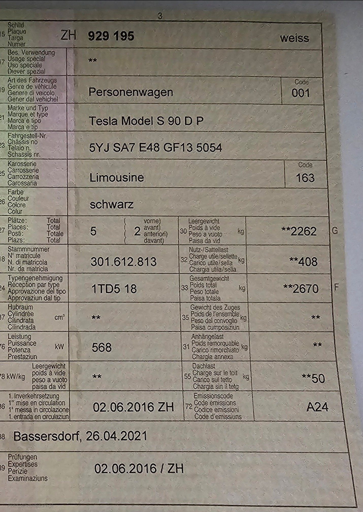 | Kommentar | Tesla S90D 772PS Fahrzeug ist fahrbar Am Fahrzeug wurde kein Werkstatttest gemacht (Für sichtbare oder nicht sichtbare Mängel wird nicht gehaftet). Wir testen und prüfen nicht alle Funktionen vom Fahrzeug. Das Risiko liegt somit vollumfänglich beim Käufer. Nach erhalt des Zuschlags, gibt es keine Nachverhandlung, auch wenn nicht deklarierte Mängel zum Vorschein kommen. Ab Platz ohne Garantie oder Gewährleistung, Wandelung und Minderung werden wegbedungen. |
