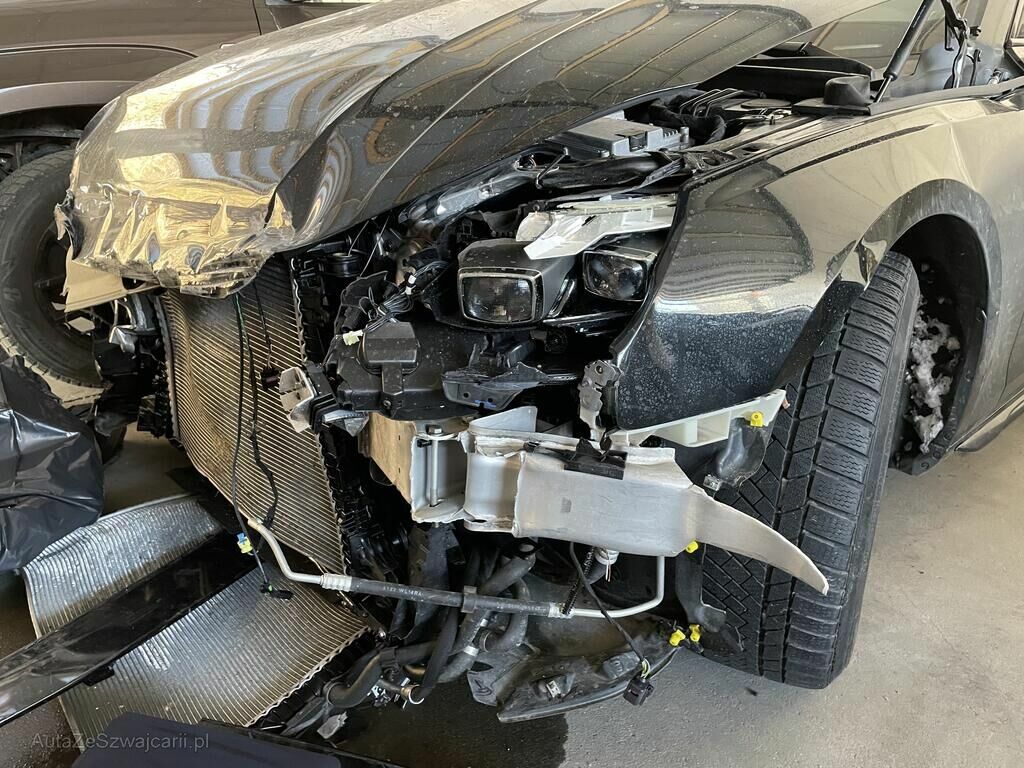Motorhaube def. / Scheinwerfer li und re def. / Schlossträger def. / Stossf mit Anbauteilen def. / beide vorderen Längsträger def. - gestaucht / ACC Sensoren def. / alle Kühler def. / div. Anbauteile am Motor def. / Fahrer/- und Beifahrerairbag ausgelöst / Kopfairbag ausgelöst / Gurtstraffer ausgelöst / Risiko: Aufhängung mit Felgen und Lenkung Vorderachse / Motor; startet nicht / Aufzählung nicht abschliessend.