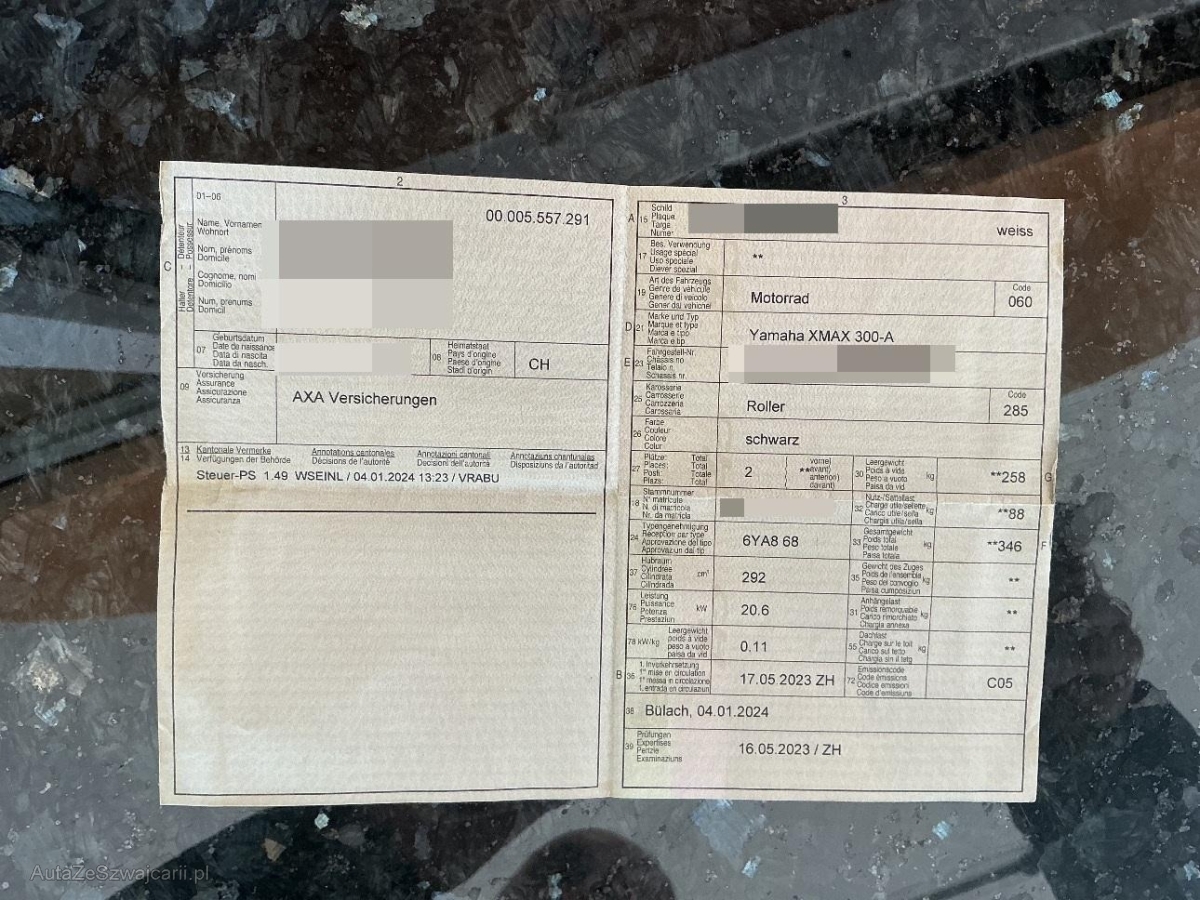 | Fahrzeugausweis | Vorhanden |