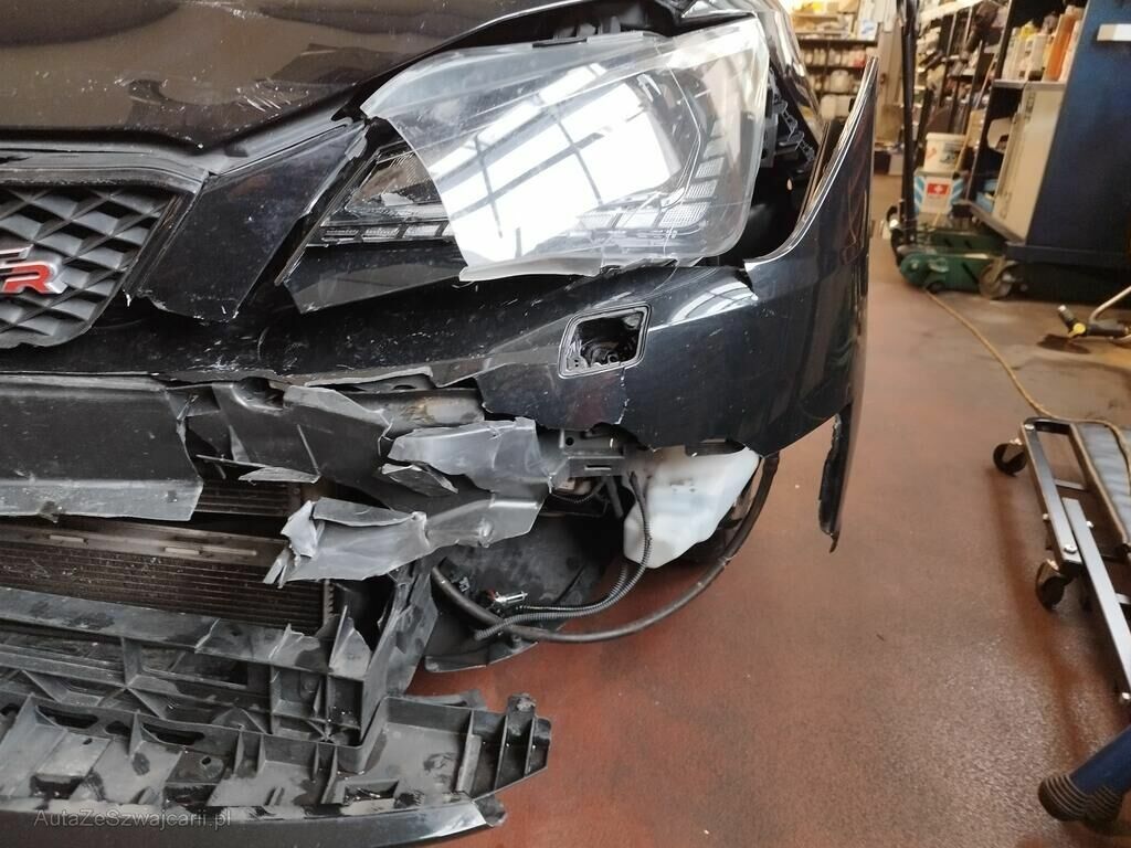 Die ganze Front ist deformiert, alle Kühler sind deformiert, beide Kotflügel sind gestaucht, der Fahrerairbag sowie Beifahrerairbag sind ausgelöst, die Gurtstraffer vorne sind ausgelöst.