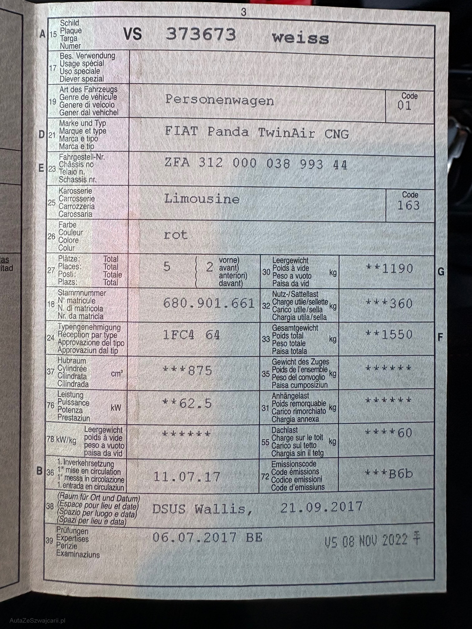 | Kommentar | Kein Werkstatt-Test gemacht!! Fahrzeug läuft einwandfrei. |