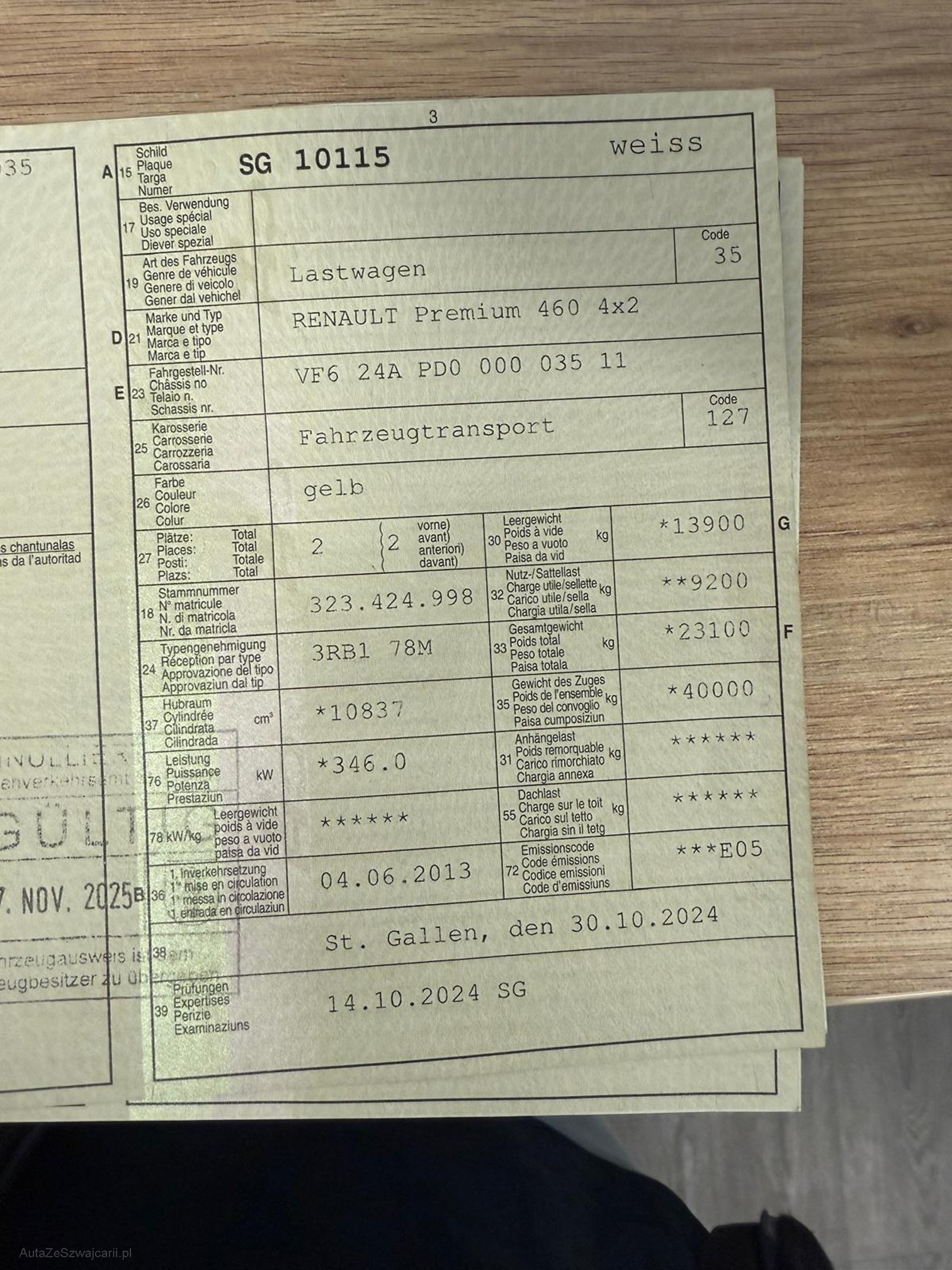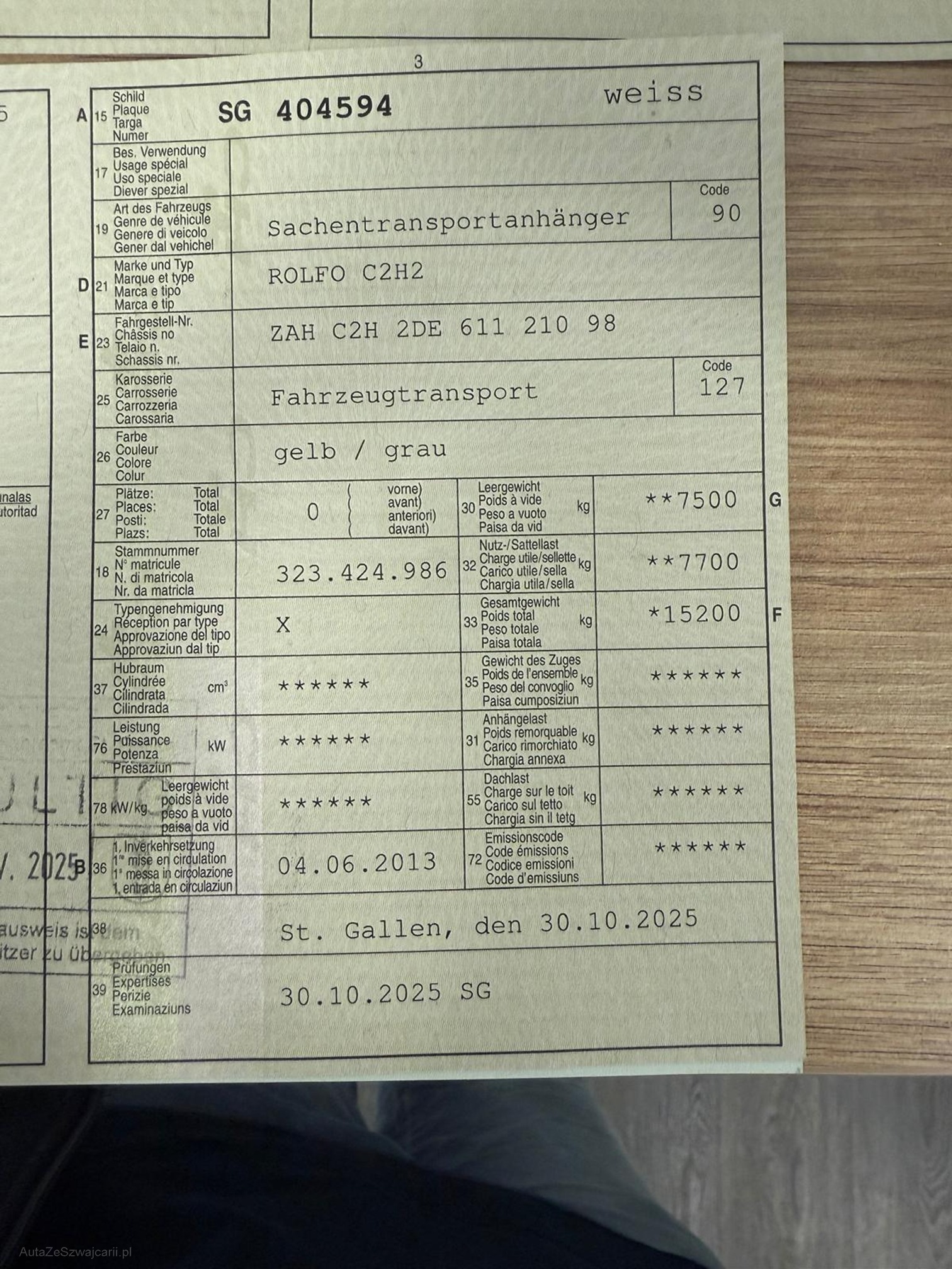 | Kommentar | Technisch nicht geprüft LKW läuft und kann gefahren werden. Bremsen müssen ersetzt werden, Auspuffanlage ist undicht sonst fährt er. Diverse Abnutzungen und kleinere Beschädigungen Anhänger wurde am 30.10.2025 frisch vorgeführt. Bei Zuschlag muss das Fahrzeug innert 7 Tage bei der Auto Hilfe in Arbon abgeholt werden. Barbezahlung |