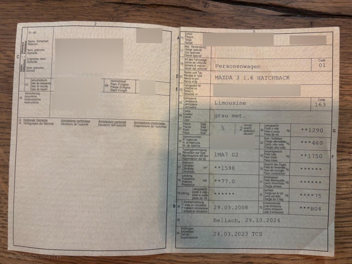 | Fahrzeugausweis | Vorhanden |