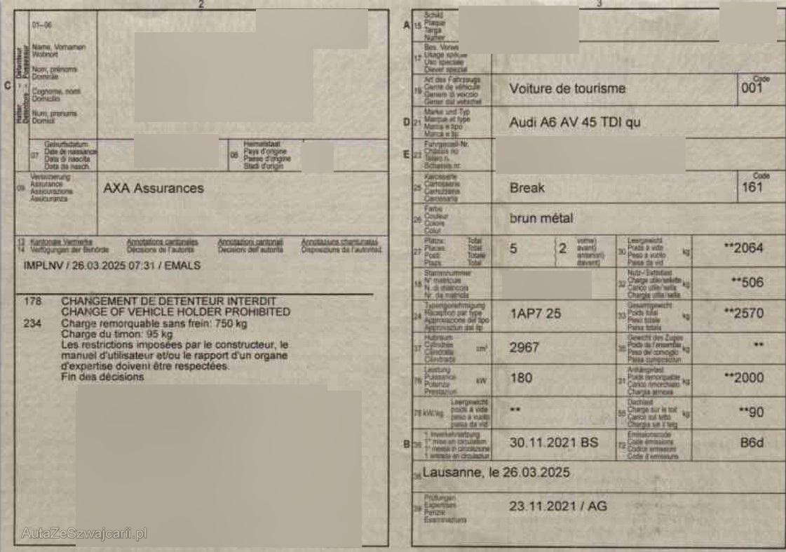 | Fahrzeugausweis | Vorhanden |