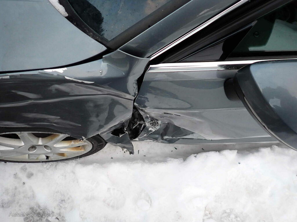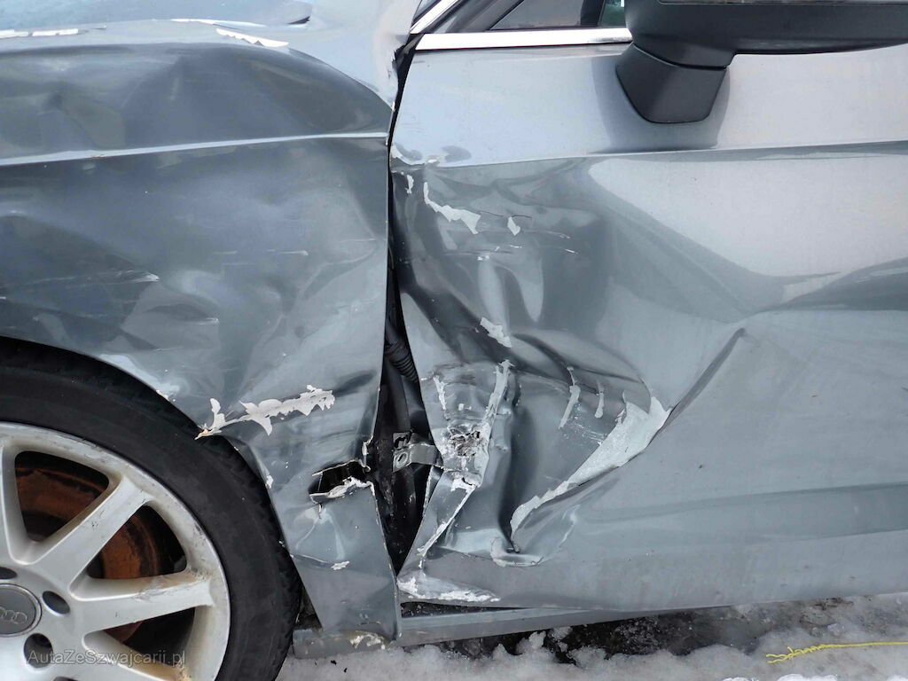 Pare-chocs, phare, aile, porte et montant endommagés