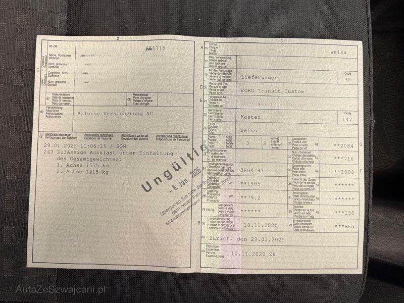 | Fahrzeugausweis | Vorhanden |
