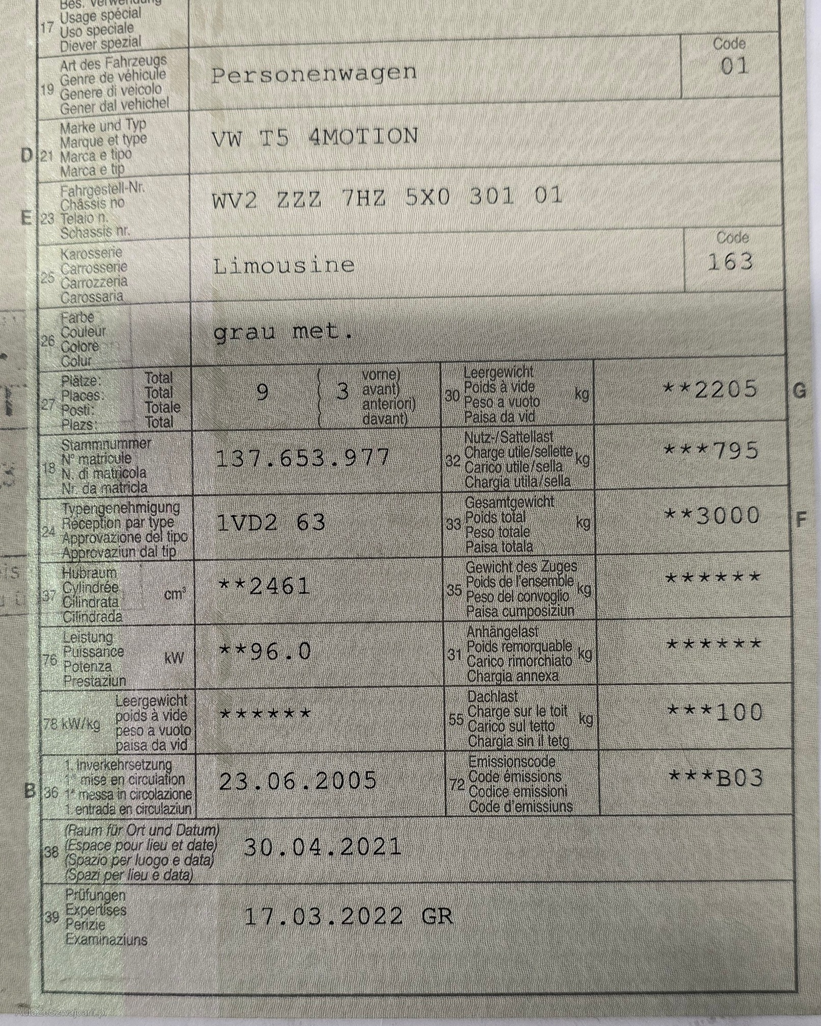| VIN | WV2ZZZ7HZ5X030101 |