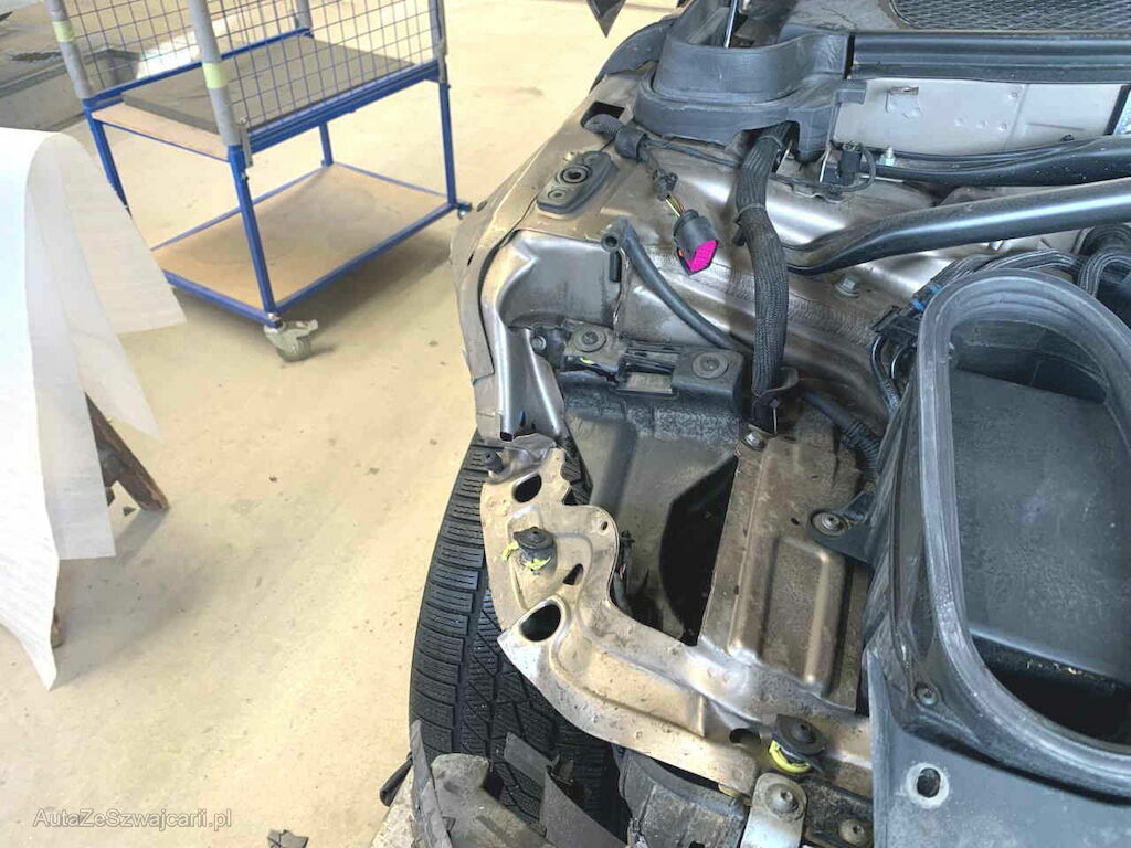 Motorhaube, Stosstange, Scheinwerfer, Kühler, inneres Radhaus sowie diverse Teile im Anprall Bereich.