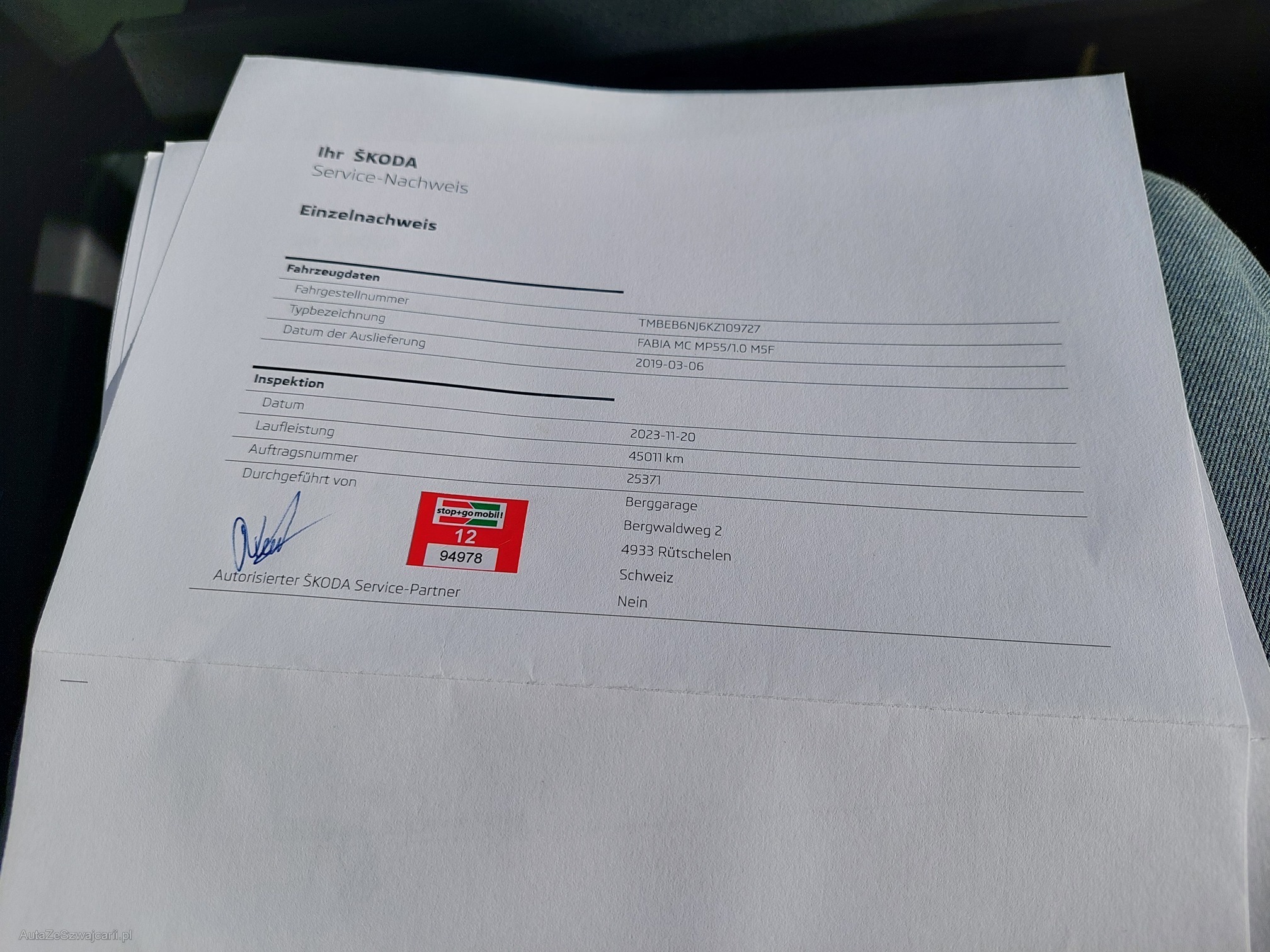 | VIN | TMBEB6NJ6KZ109727 |