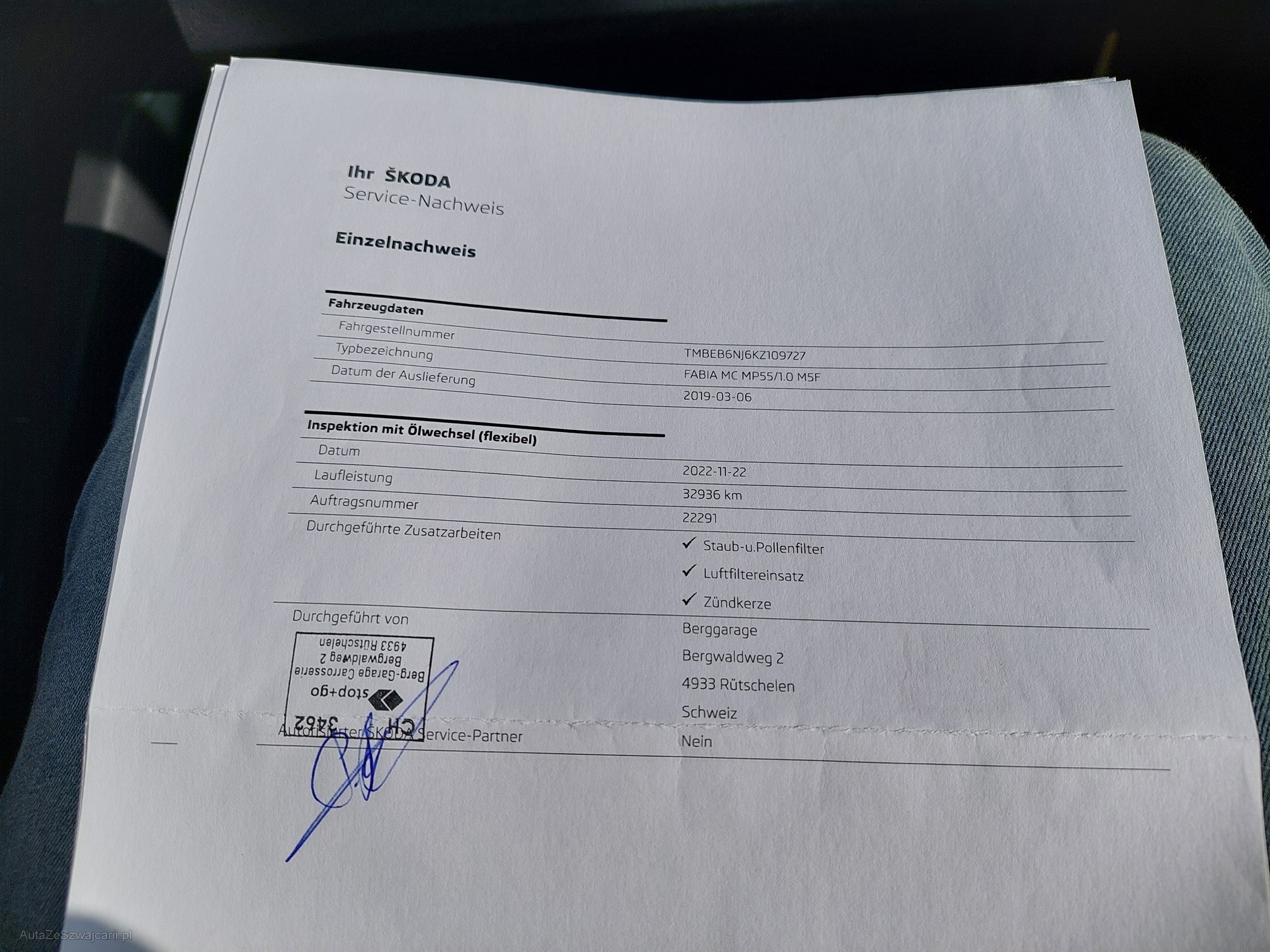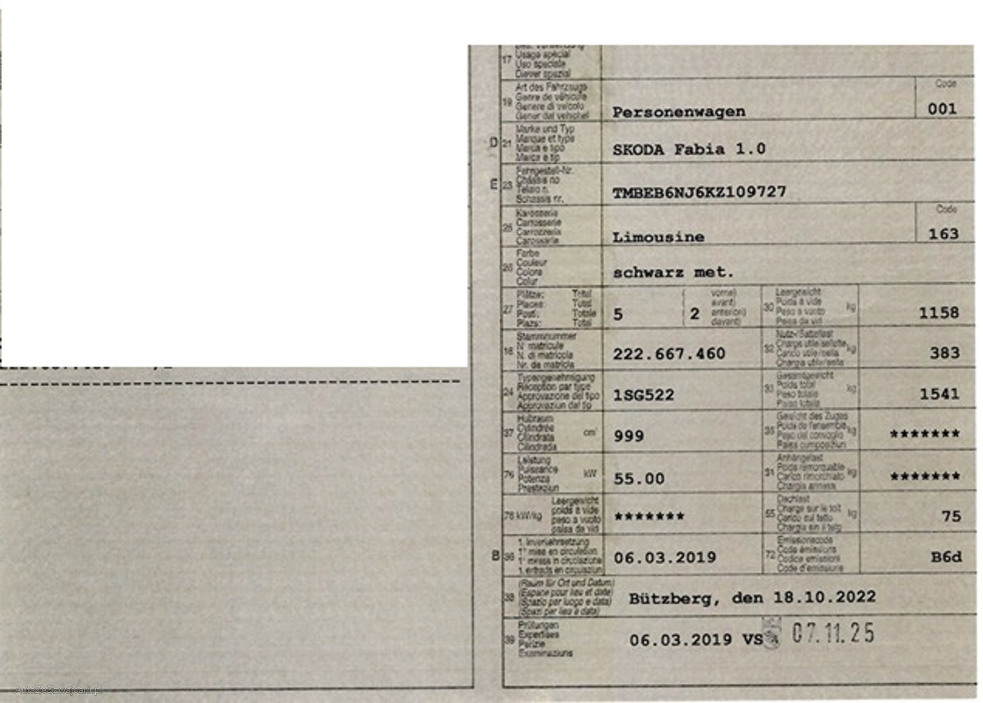 | Kommentar | Frontscheibe wurde repariert (siehe Foto). Winterpneus vorne NEU! Unsere Fahrzeuge wurden keiner Prüfung unterzogen, Fahrzeugkauf auf eigenes Risiko ab Platz ohne Nachwährschaft. Das Gewährleisten für Sachmängel wird weggegangen. Fahrzeugbereifung, Fahrzeugzustand und Ausstattung gemäss Bildern. |