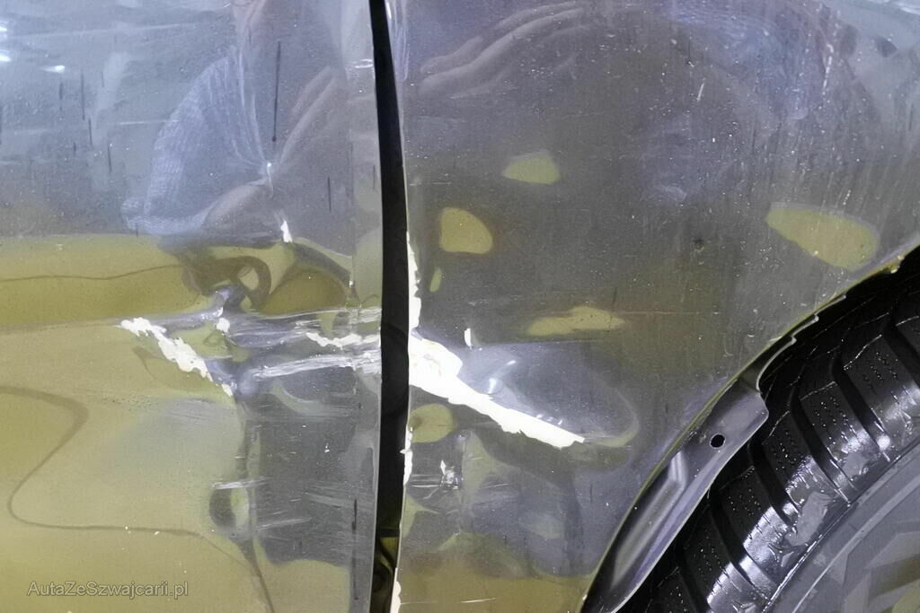 Der Kotflügel mit Auskleidung sowie die Beifahrertür inkl. dem Schweller vorne rechts sind beschädigt.