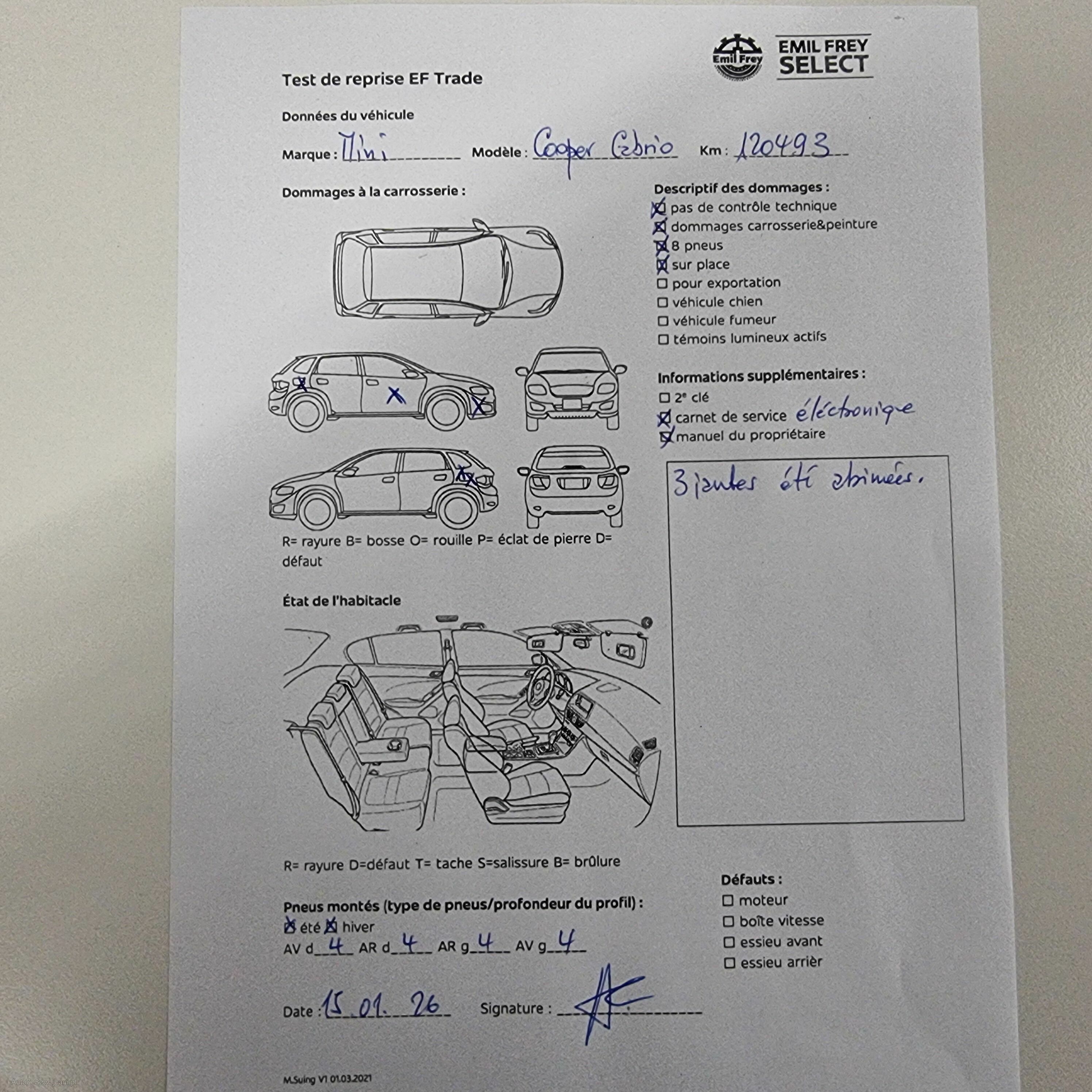 Pas de contrôle technique (essai en atelier) effectué