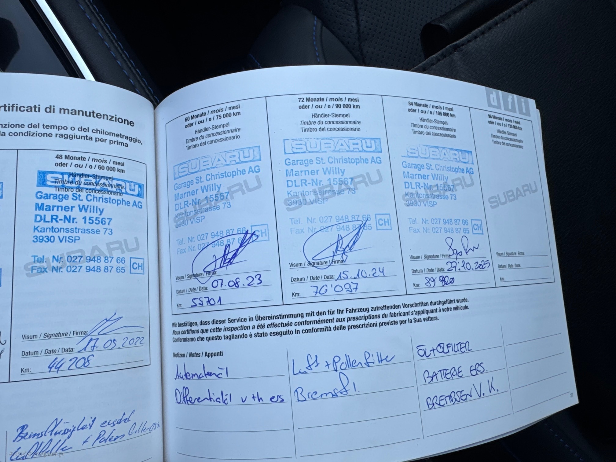 | Kommentar | Sehr gepflegter Levorg. Anhängerkupplung abnehmbar. Letzter Service mit Bremsen vorne Komplett (Scheiben und Beläge) und Batterie 10/2025 mit 89000km Hinweis zum Fahrzeugverkauf Es wurde keinem Werkstatttest durchgeführt. Eine Überprüfung sämtlicher Funktionen hat nicht stattgefunden. Für sichtbare sowie nicht sichtbare Mängel wird keinerlei Haftung übernommen. Der Verkauf erfolgt ab Platz, ohne Garantie oder Gewährleistung. Jegliche Ansprüche auf Wandelung oder Minderung sind ausdrücklich ausgeschlossen. Nach Zuschlag bzw. Kaufabschluss sind Nachverhandlungen ausgeschlossen, auch im Falle nachträglich entdeckter und nicht deklarierter Mängel. Das Risiko trägt vollumfänglich der Käufer. |