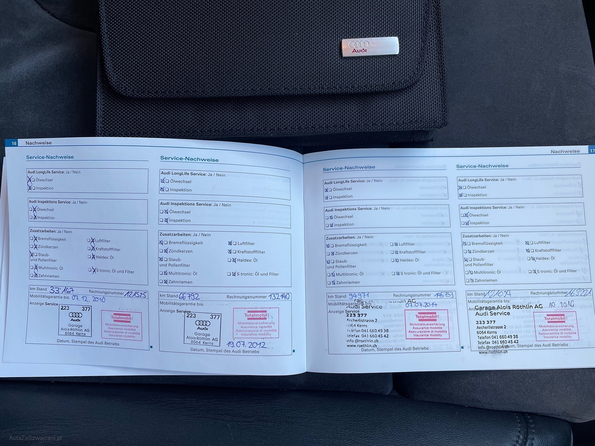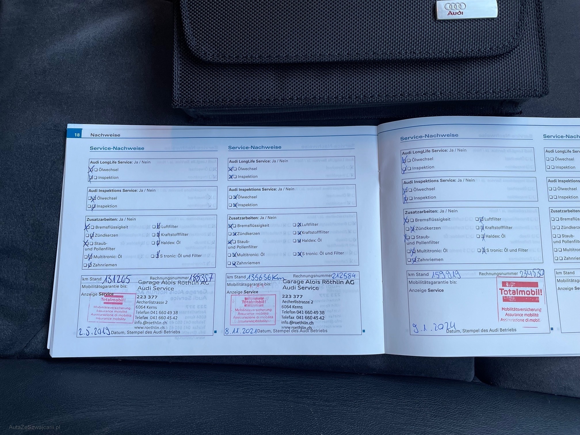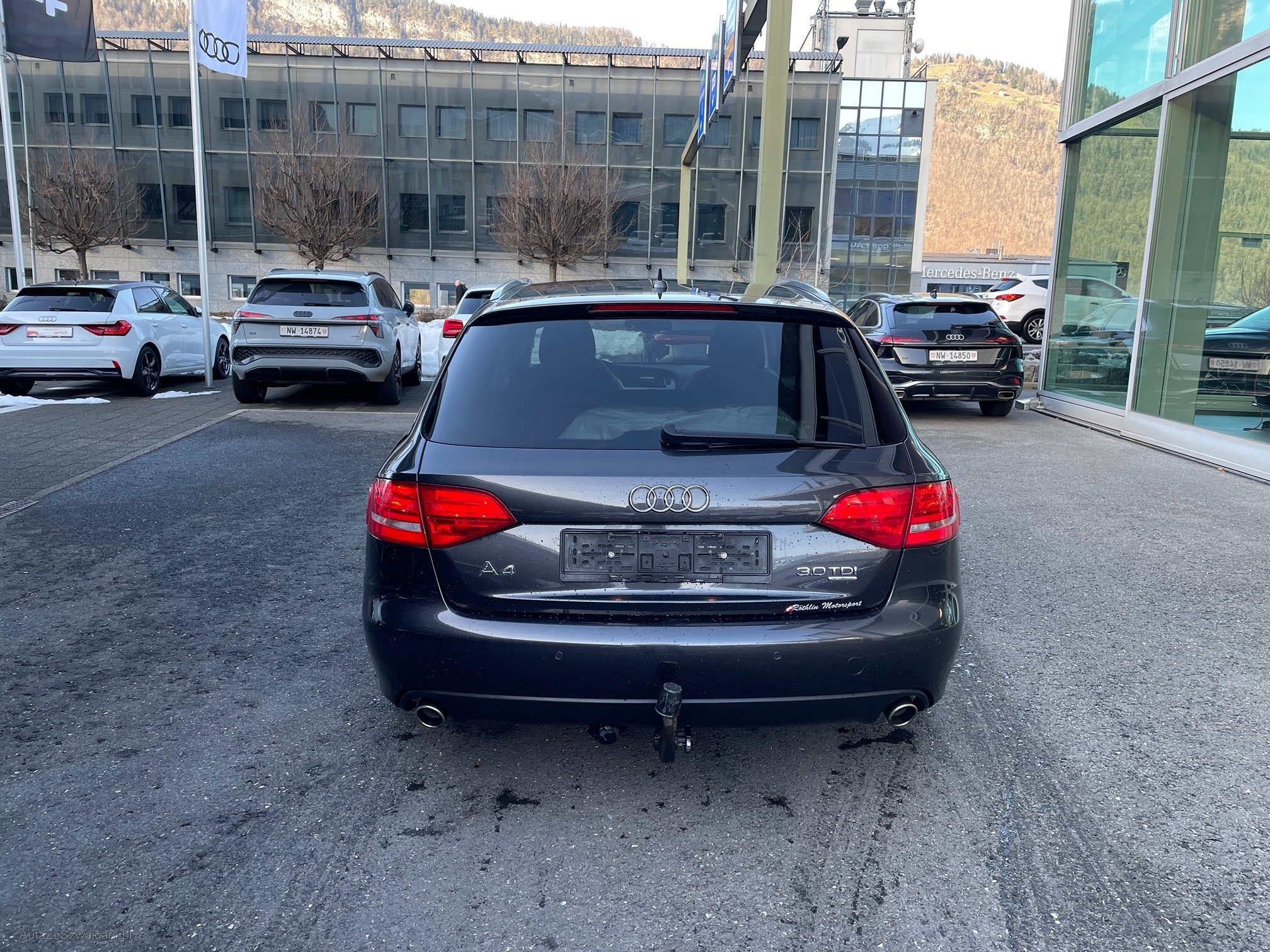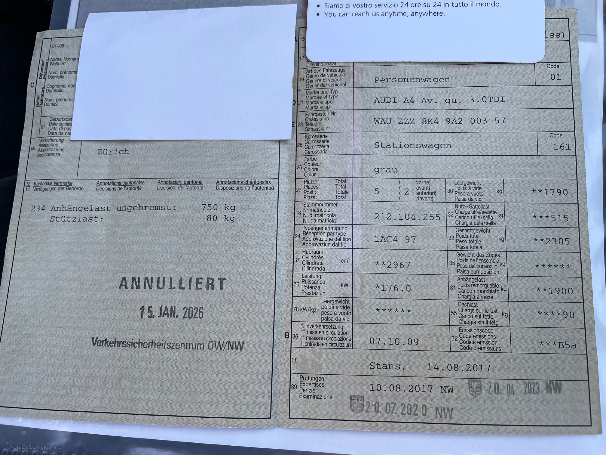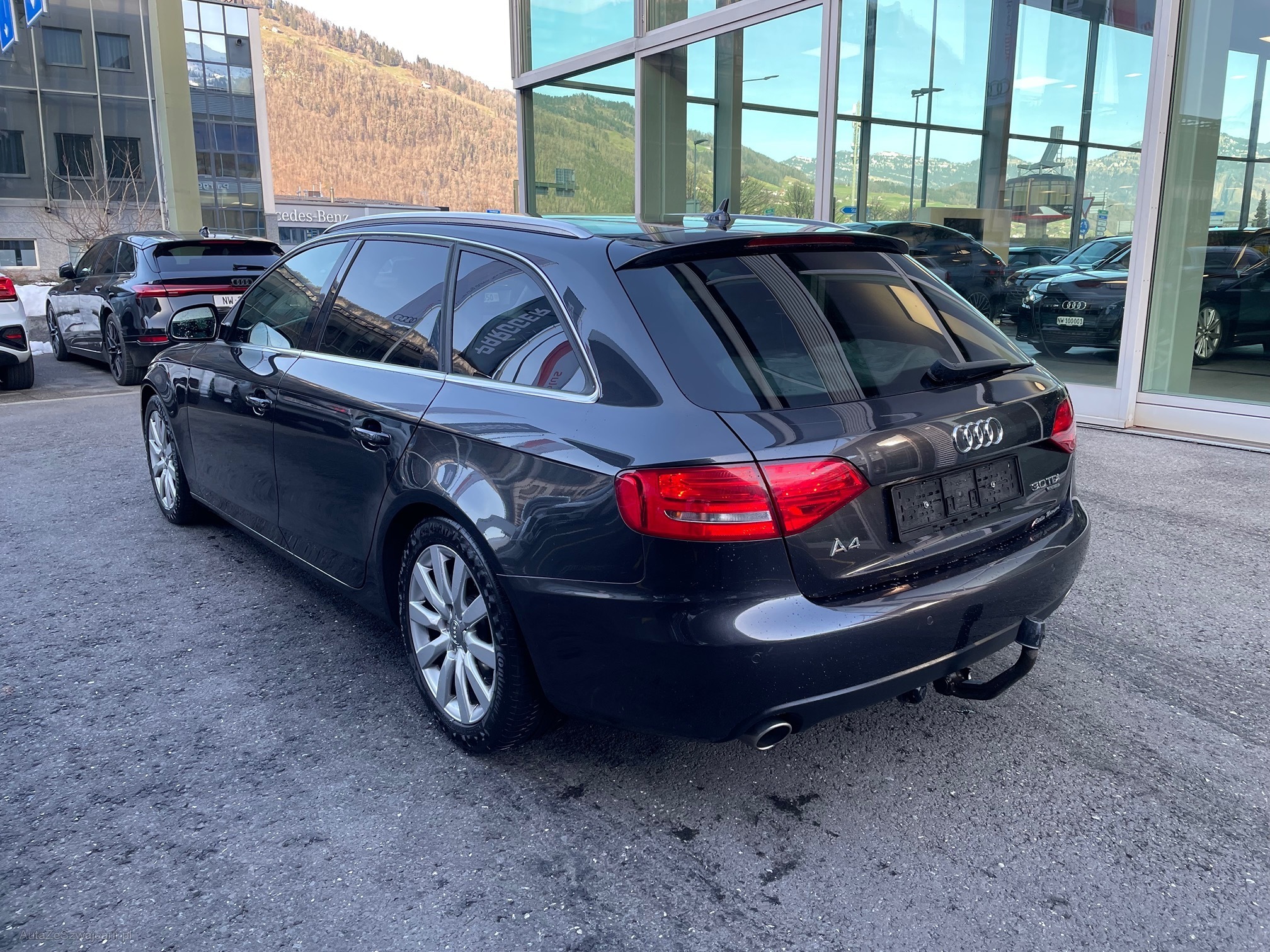 | Kommentar | Fahrzeug ist Alters und Kilometer entsprechend, in gepflegtem Zustand. Regelmässig bei Audi Service gewartet (siehe Fotos). Aktuell ist Service fällig. Kein Eintausch Test vorhanden. Carosserie Krater vorne links und kleiner Kratzer hinten rechts. Siehe Fotos. Anhängerkupplung abnehmbar. |