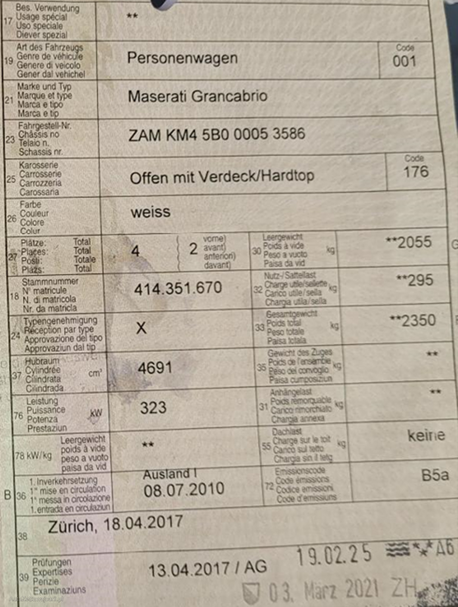 | Kommentar | Top gepflegter Maserati Grancabrio, ab MFK |