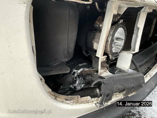 | Schadensbeschreibung | Beschreibung der Schäden: Frontschaden: Stossstange, Nebellampe links, Motorhaube, Kondensator, Frontblech, Fahrschemmel eingedrückt und zerkratzt Vorbestandene Schäden: Seite rechts: Türe rechts eingedrückt und zerkratzt Achtung: Das Getriebe verursacht ungewöhnliche Geräusche (ein Schlagen). Vermutlich liegt ein Getriebeschaden vor. |