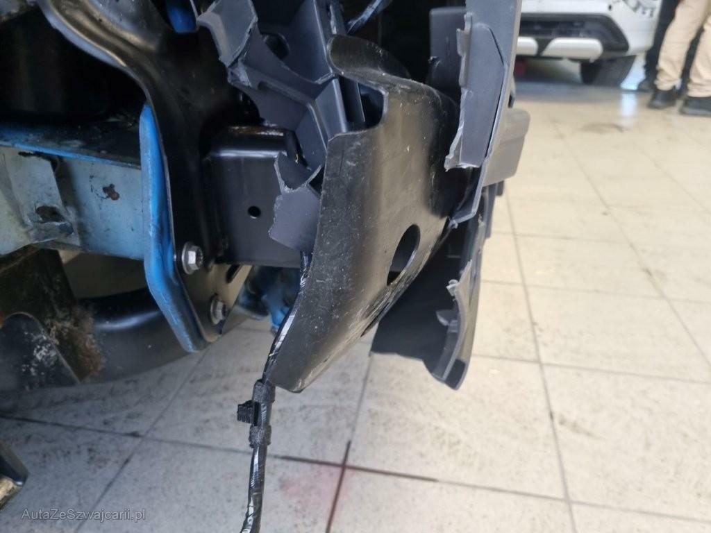 | Schadensbeschreibung | Suspension et direction avant droite faussées, jante avant droite enfoncée, aile, joue d'aile avant droite, renfort de pare-chocs avant, support de radiateur, masse de longeron avd enfoncés. Longeron avant droit refoulé, radiateur et intercooler percés, faisceau compartiment moteur sectionné, boite à air, pare-chocs avant, phare avant droit, calandre cassés. / Dommages préexistants : traces d'utilisation |