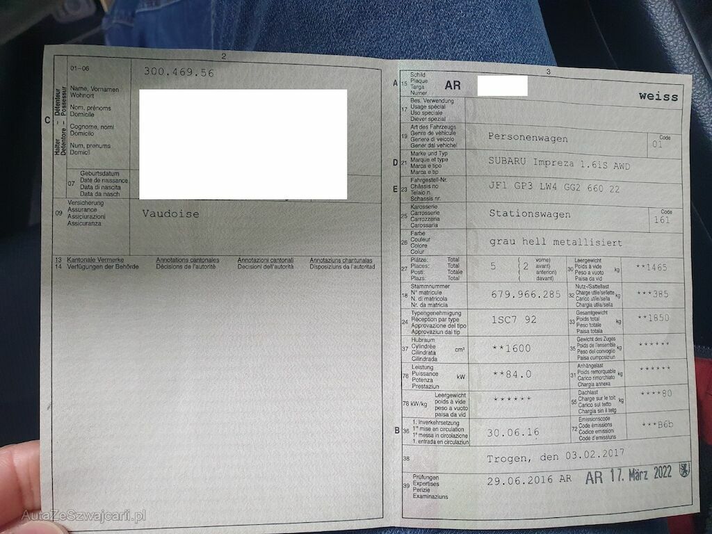 | Typ | Impreza Wagon 1.6i Swiss Two |