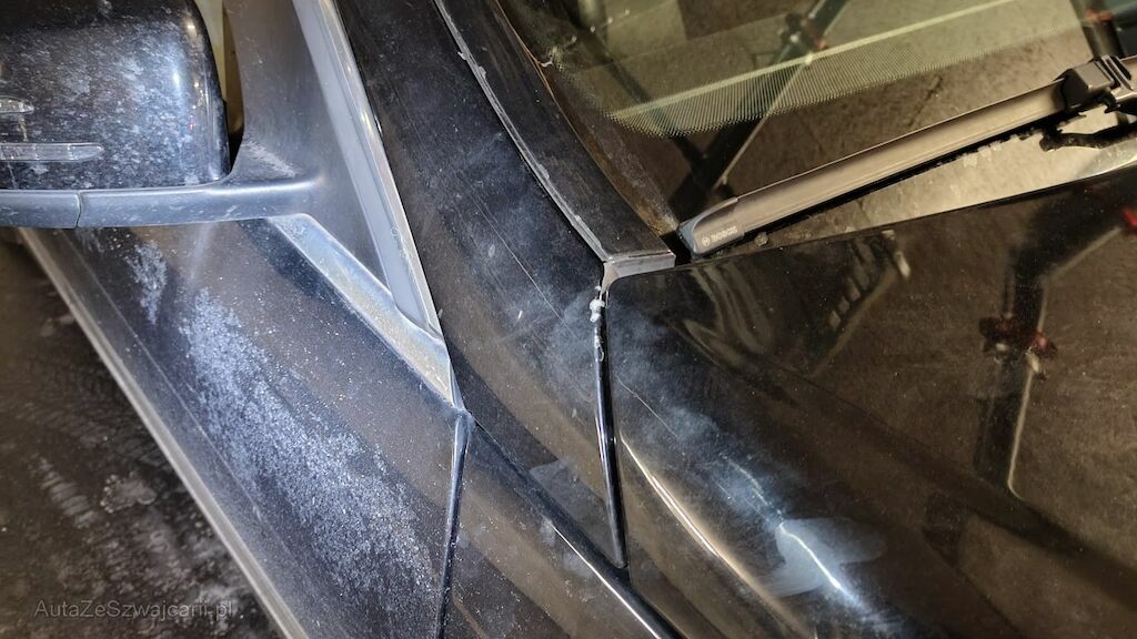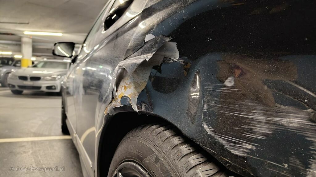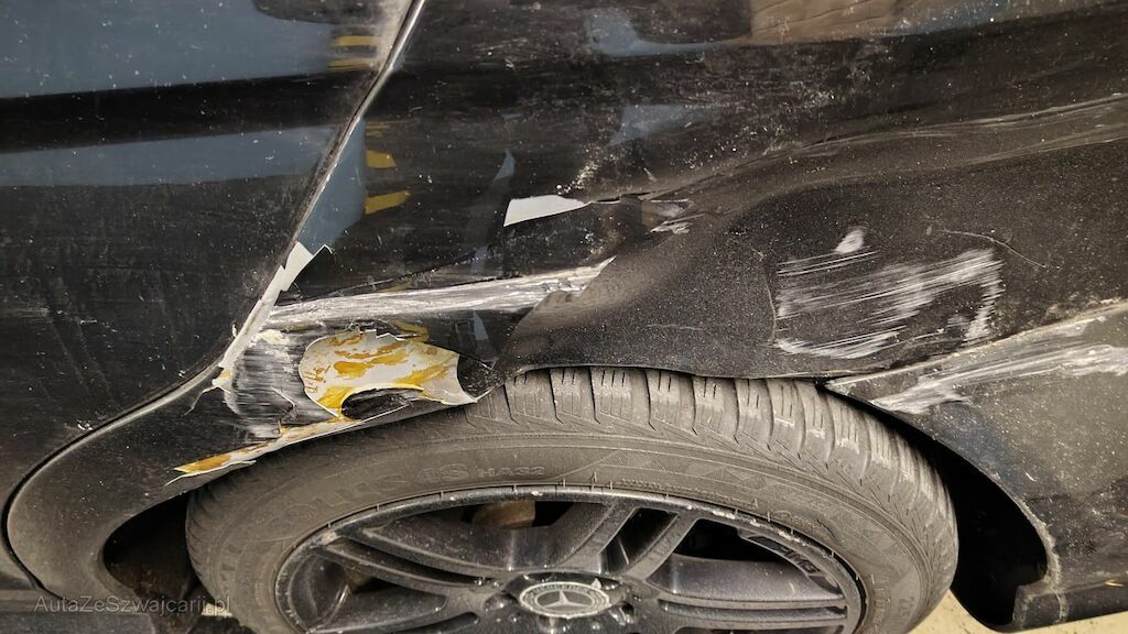 Vorschäden: Stossstange vorne mehrfach zerkratzt. Delle in der Motorhaube und mehrere Steinschläge mit Rost. Beide Aussenspiegel zerkratzt, Blinkerglas links beschädigt. Lackablösung an den Zierleisten auf dem Dach. Fahrzeug rundum zerkratzt und Lack allgemein in schlechtem Zustand. Stossstange hinten mehrfach zerkratzt. Türen links mehrfach zerkratzt. Randsteinschäden an allen Felgen. Spur Hinterachse verstellt. Fahrersitz beschädigt. Diverse Gebrauchsspuren usw.