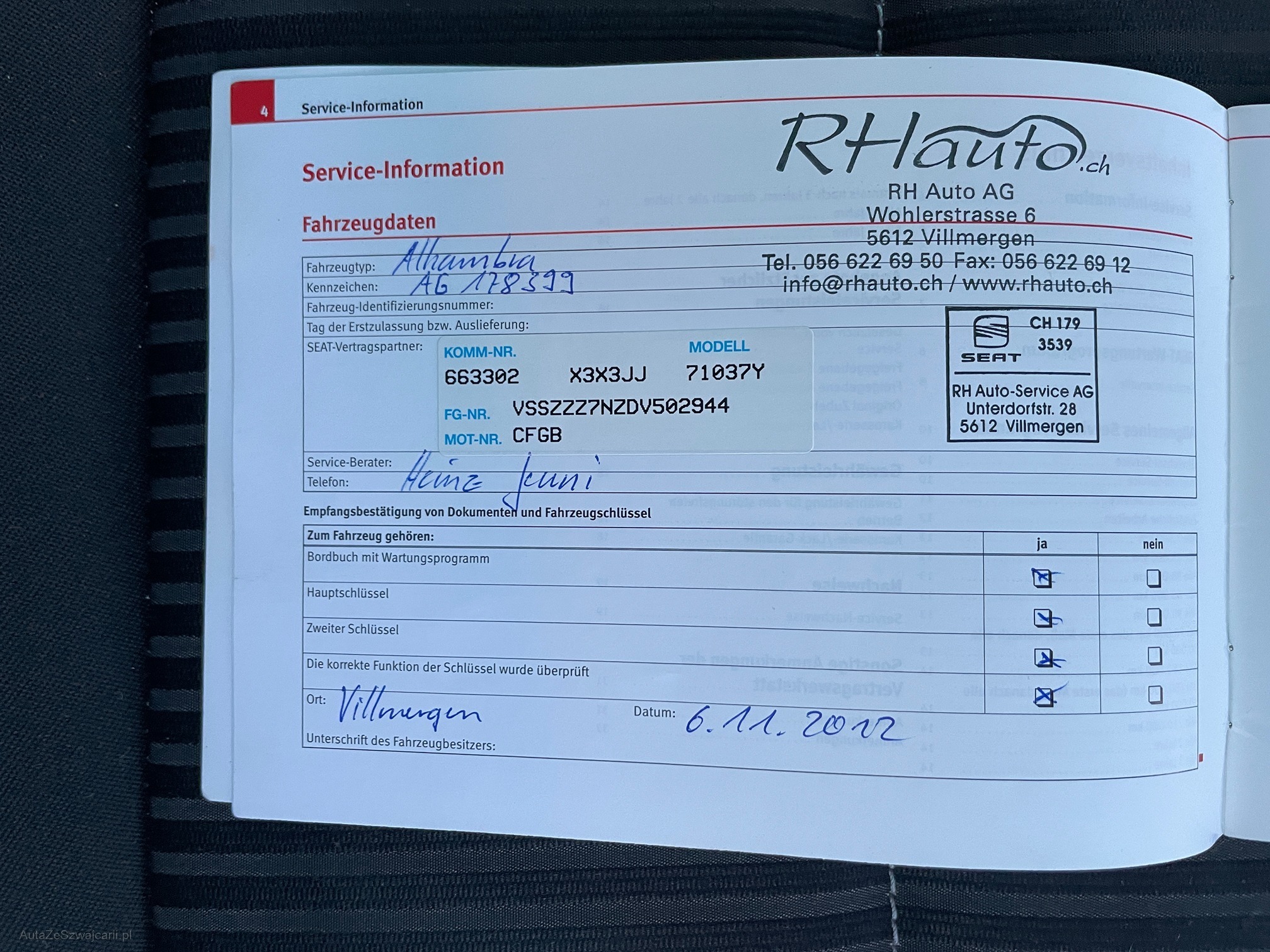 | Kommentar | Servicegepflegter SEAT Alhambra 2.0TDI 170PS DSG aus 1. Hand. Fahrzeug fährt sich einwandfrei. Dachbox und Grundträger gehören dazu. Auf Wunsch kann das Fahrzeug besichtigt werden. Am Fahrzeug wurde kein Werkstatttest durchgeführt (Für sichtbare oder nicht sichtbare Mängel wird nicht gehaftet). Wir testen & kontrollieren nicht alle Funktionen des Fahrzeugs. Das Risiko liegt somit vollumfänglich beim Käufer. Nachdem der Höchstbietende den Zuschlag erhalten hat, gibt es keine Nachverhandlung, auch wenn nicht deklarierte Mängel zum Vorschein kommen sollten. Ab Platz ohne Garantie, Wandelung und Minderung ausgeschlossen. |
