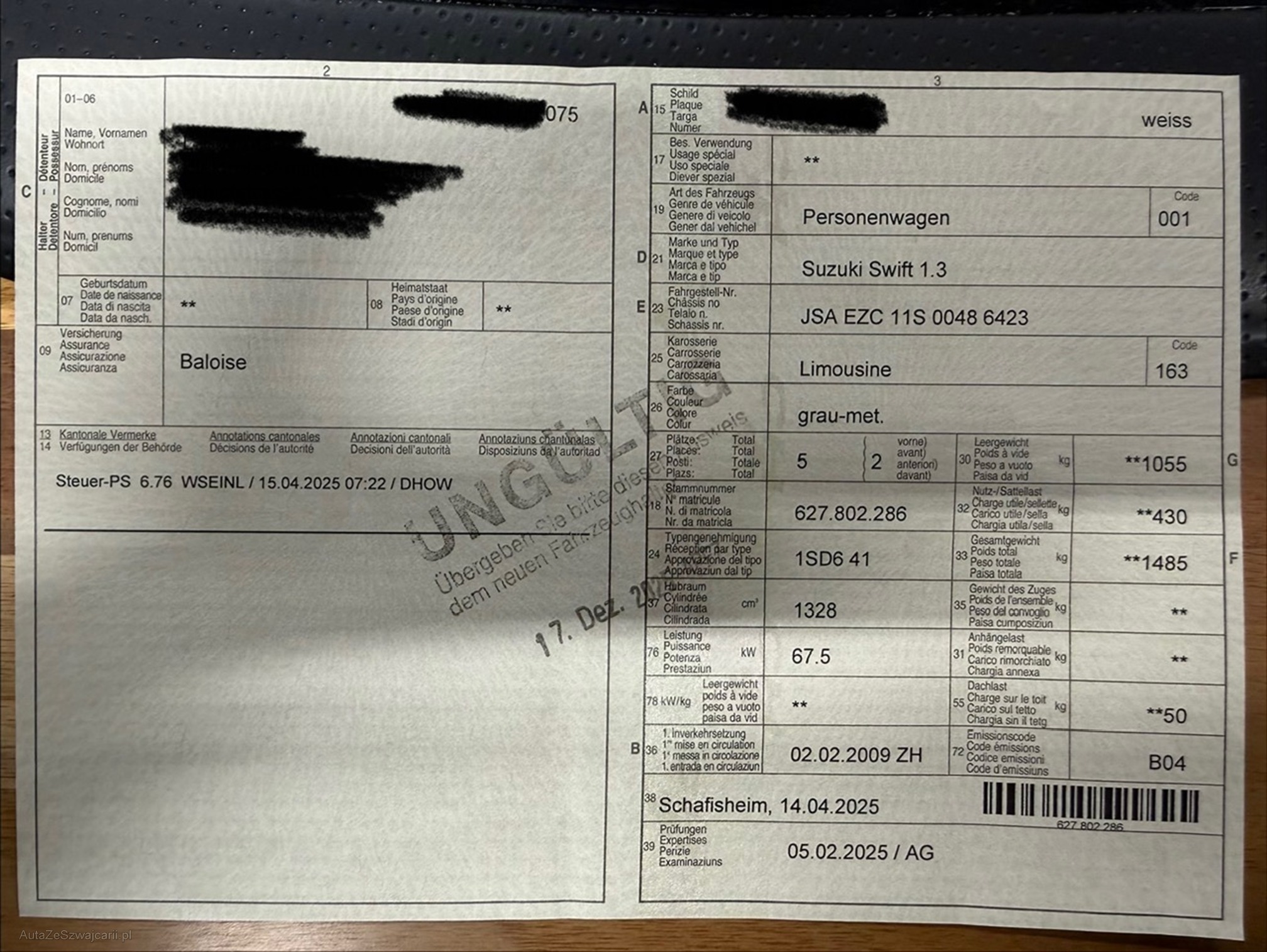 | Kommentar | Fahrzeug wurde im Februar 2025 von uns ab MFK gestellt und an einen Stammkunden verkauft. Verkauf wegen zu wenig gebraucht. Sommerreifen auf Alufelgen (Bilder) neuwertig, Winterreifen neu auf Stahlfelgen Besichtigung gegen Voranmeldung ist möglich. Für sichtbare oder nicht sichtbare Mängel wird nicht gehaftet. Wir testen und kontrollieren nicht alle Funktionen vom Fahrzeug. Das Risiko liegt somit vollumfänglich beim Käufer. Nachdem der Höchstbietende den Zuschlag erhalten hat, gibt es keine Nachverhandlung, auch wenn nicht deklarierte Mängel zum Vorschein kommen sollten. Ab Platz ohne Garantie, Wandelung und Minderung werden weggebunden |